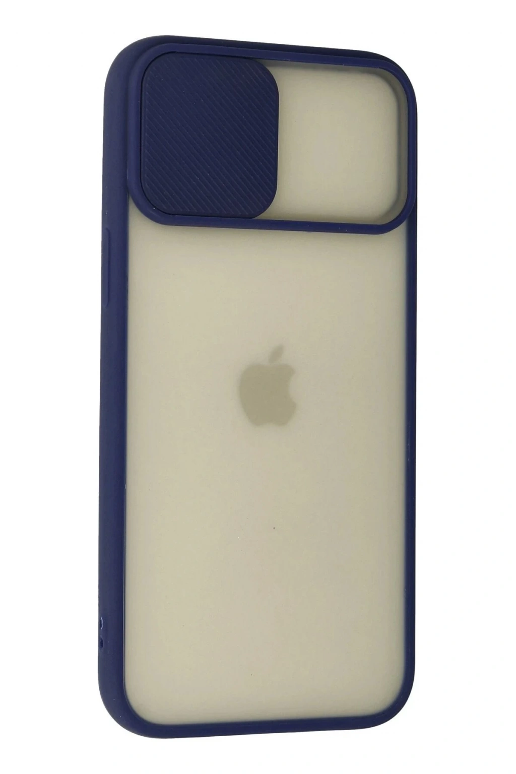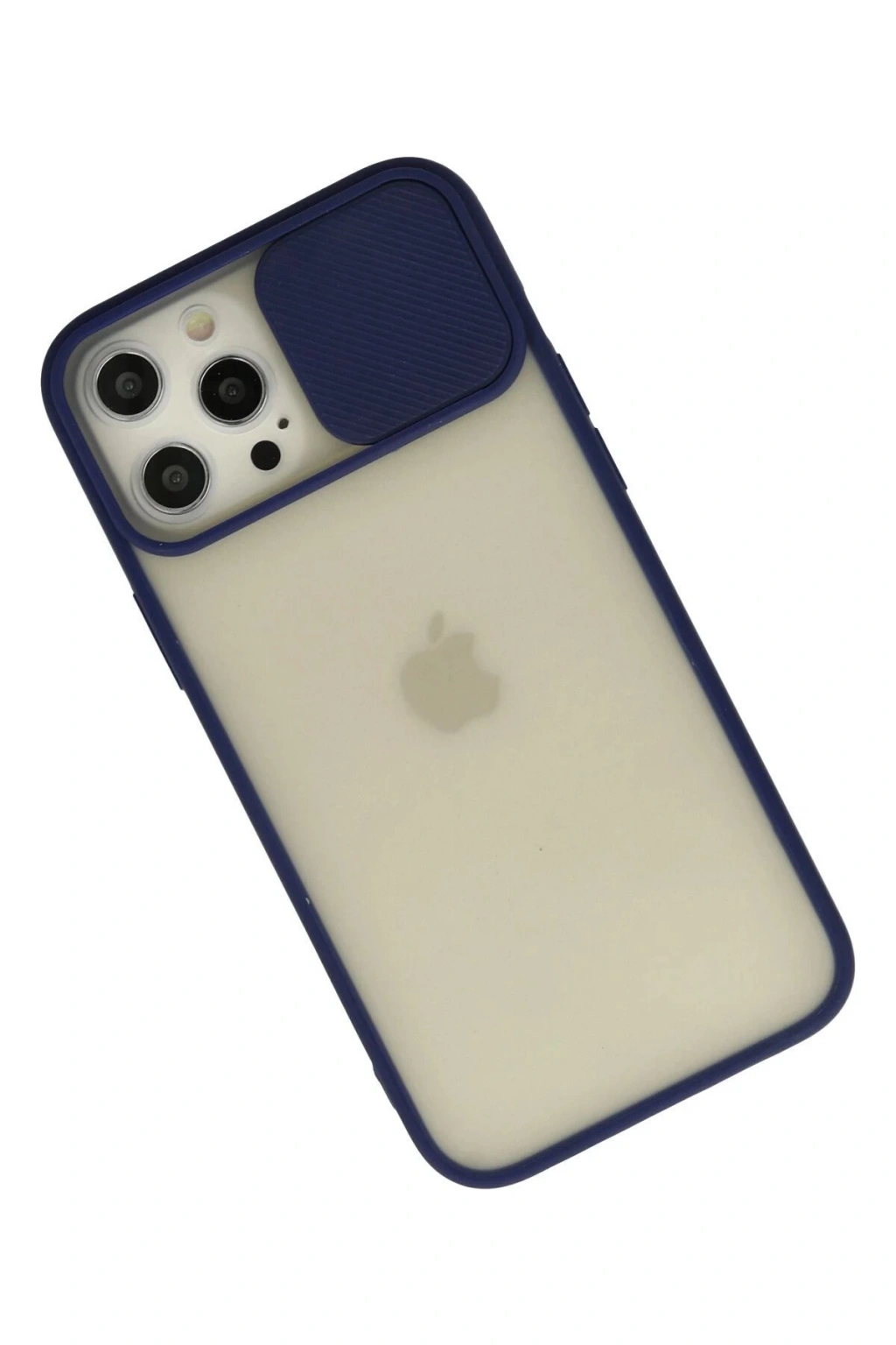 Newface iPhone 12 Pro Max Kılıf Palm Buzlu Kamera Sürgülü Silikon - Lacivert
