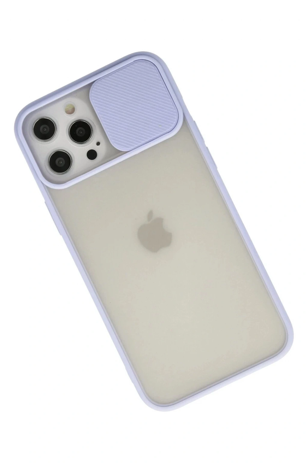 Newface iPhone 12 Pro Max Kılıf Palm Buzlu Kamera Sürgülü Silikon - Lila