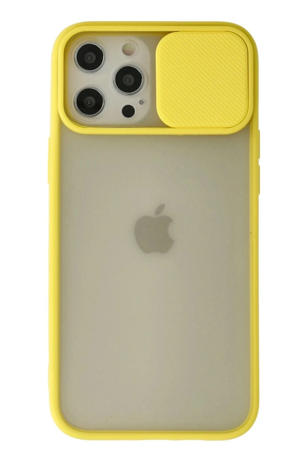 Newface iPhone 12 Pro Max Kılıf Palm Buzlu Kamera Sürgülü Silikon - Sarı