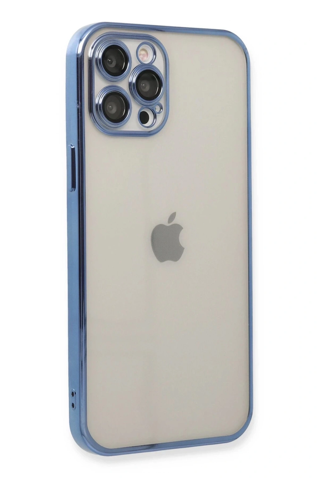 Newface iPhone 12 Pro Max Kılıf Razer Lensli Silikon - Açık Mavi