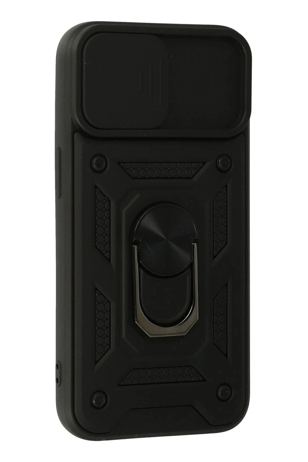 Newface iPhone 13 Kılıf Pars Lens Yüzüklü Silikon - Siyah