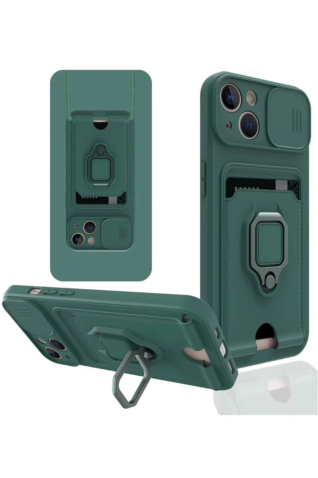 Newface iPhone 13 Kılıf Zuma Kartvizitli Yüzüklü Silikon - Yeşil