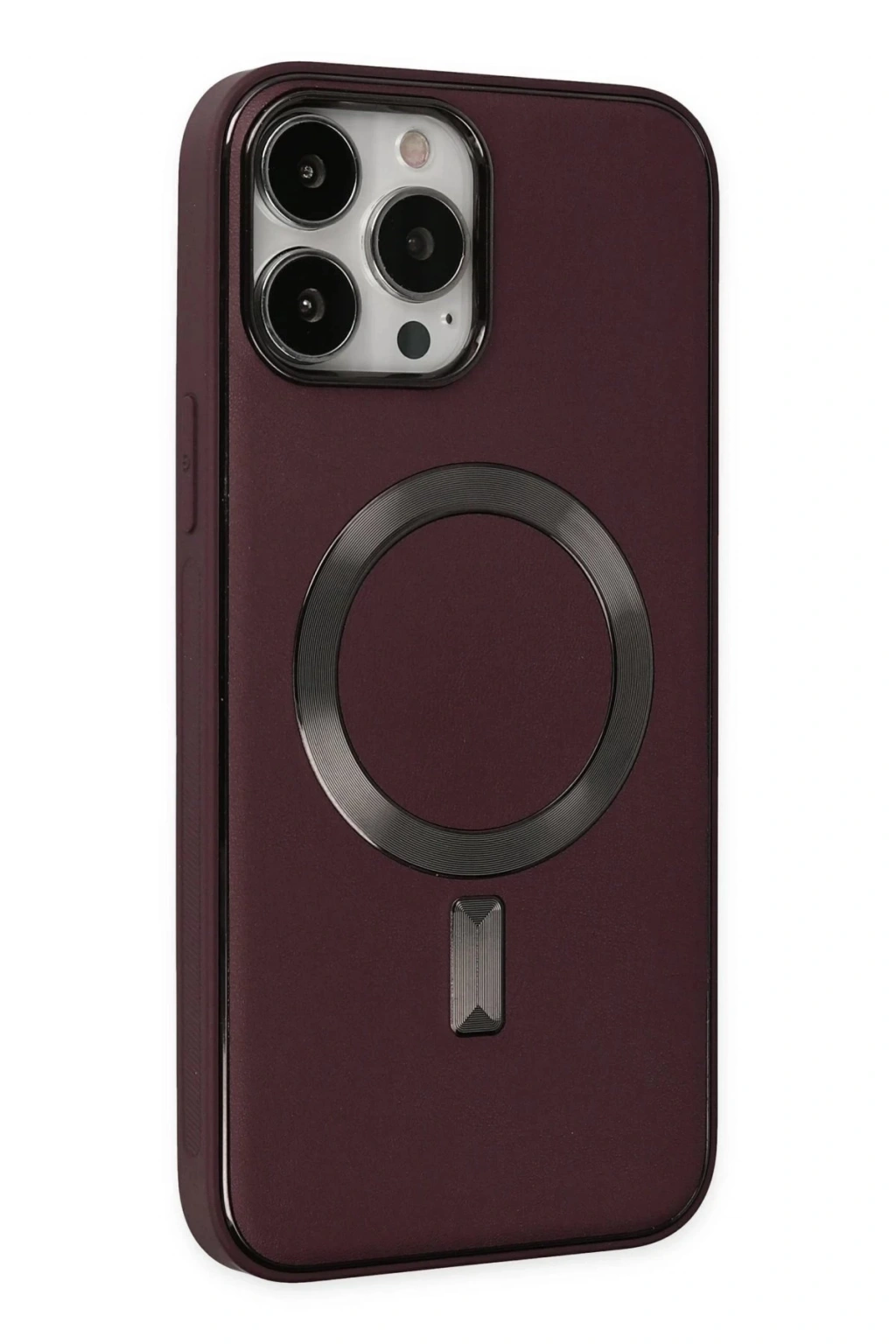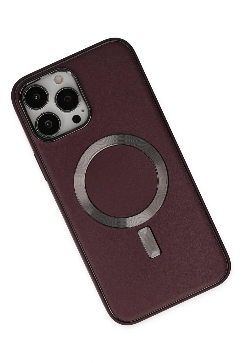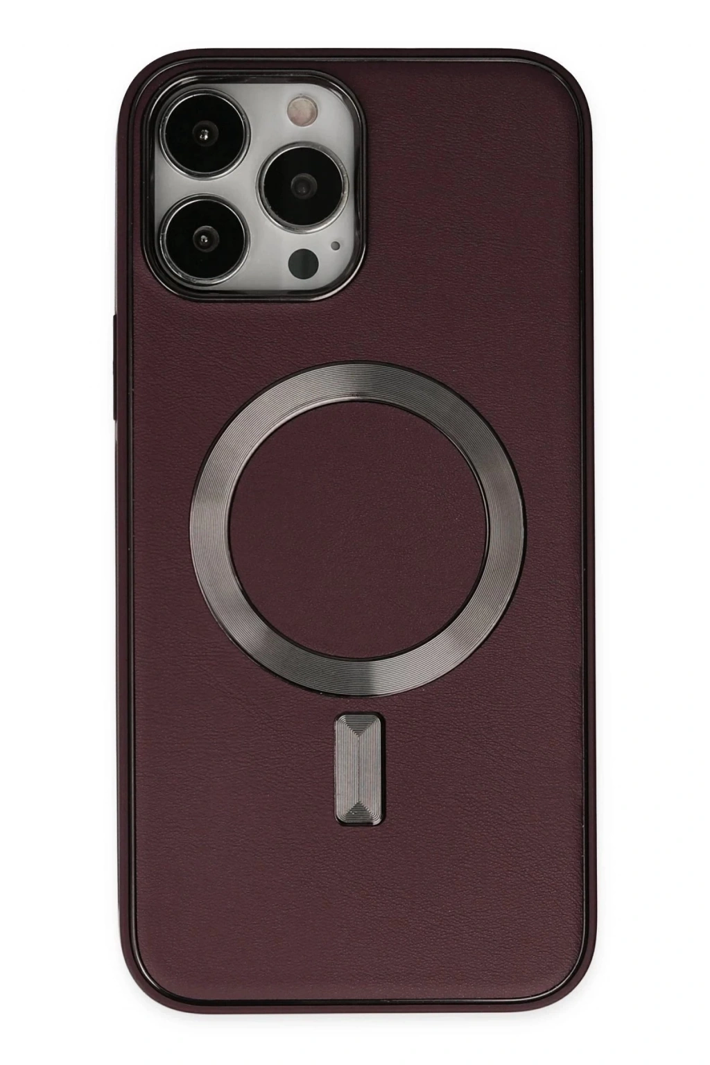 Newface iPhone 13 Pro Kılıf Coco Deri Magneticsafe Silikon - Bordo