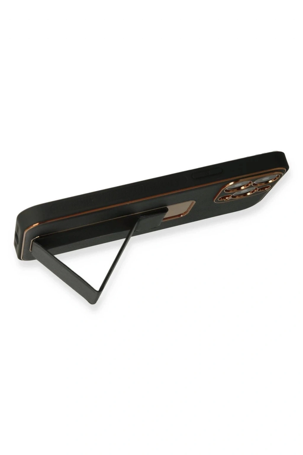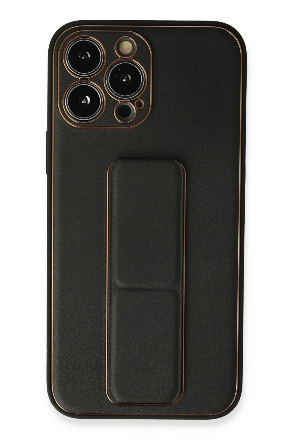 Newface iPhone 13 Pro Kılıf Coco Deri Standlı Kapak - Siyah