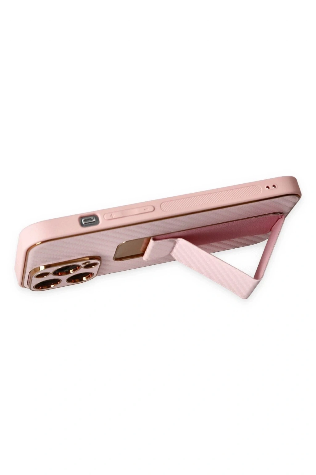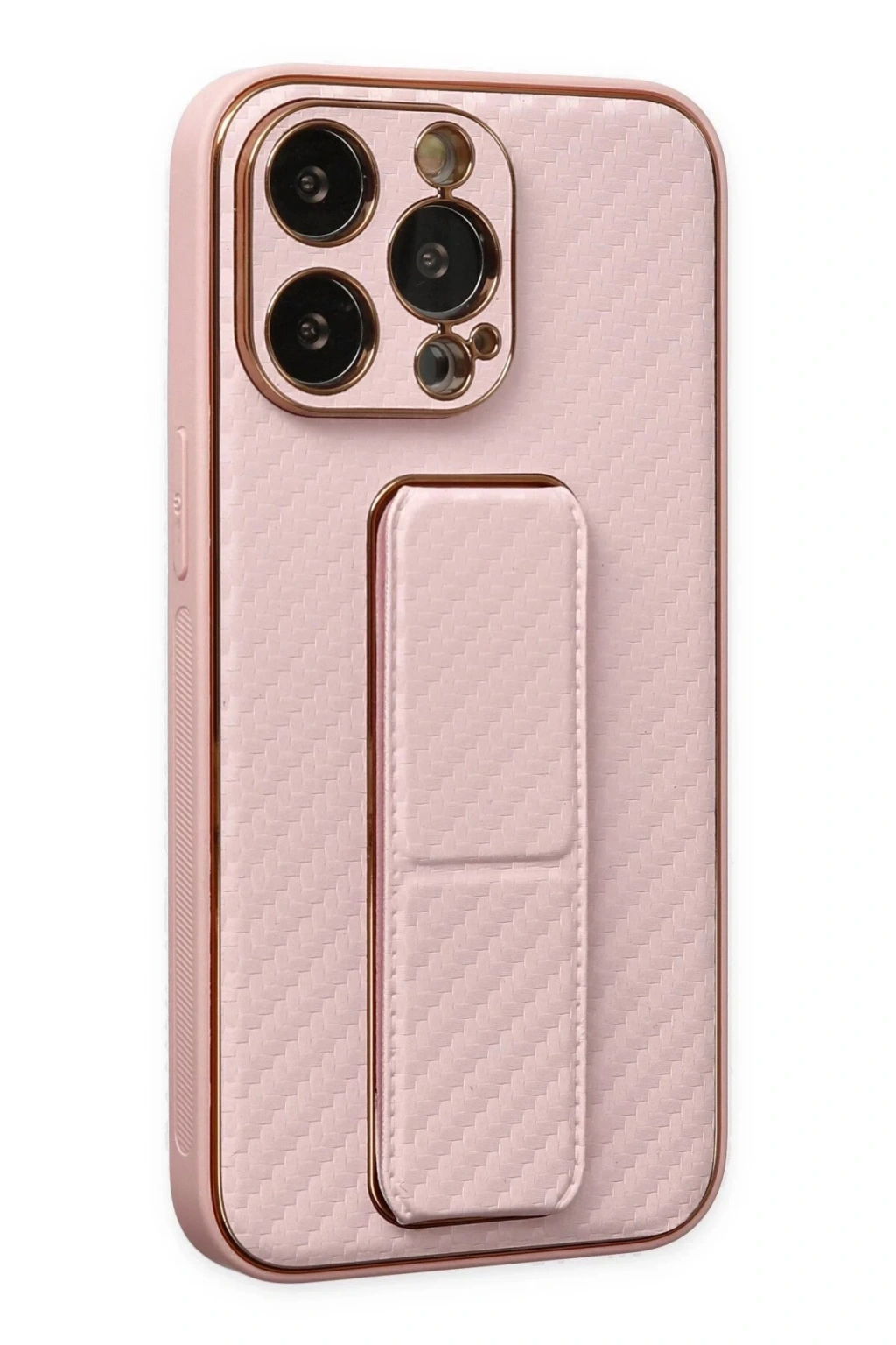 Newface iPhone 13 Pro Kılıf Coco Karbon Standlı Kapak - Pembe