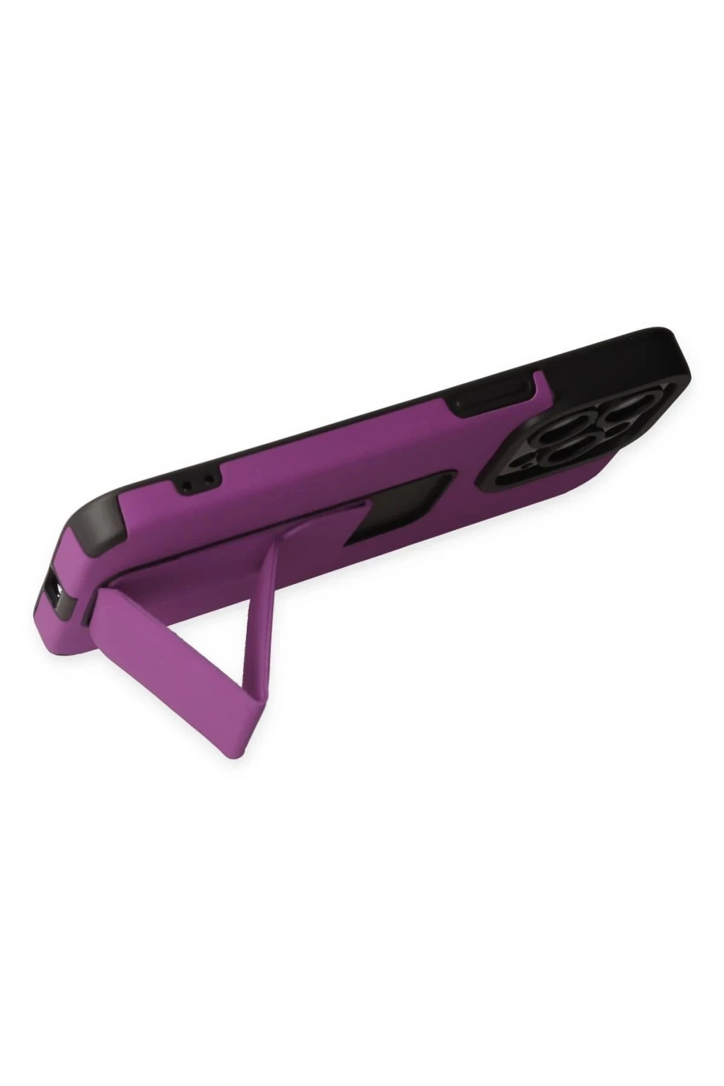 Newface iPhone 13 Pro Kılıf Mega Standlı Silikon - Mor