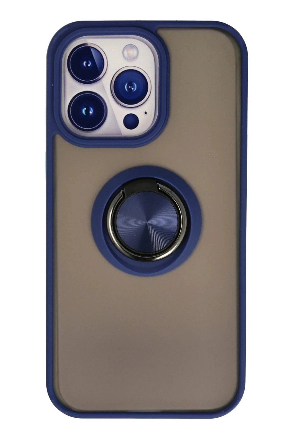 Newface iPhone 13 Pro Kılıf Montreal Yüzüklü Silikon Kapak - Lacivert