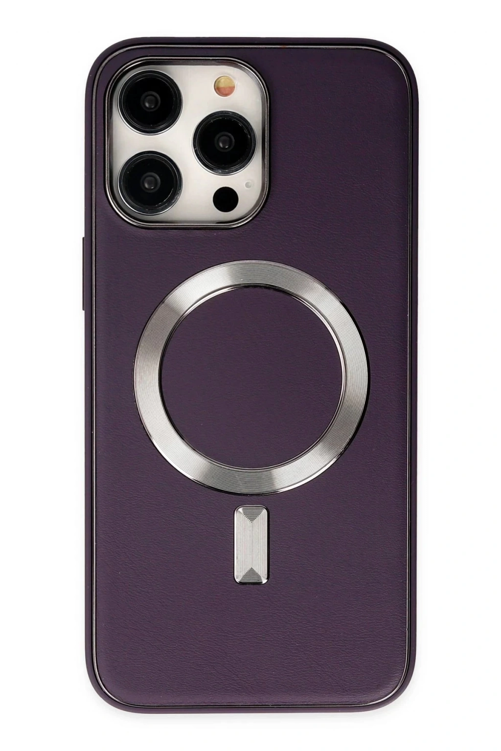 Newface iPhone 13 Pro Max Kılıf Coco Deri Magneticsafe Silikon - Derin Mor