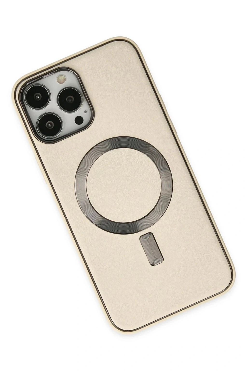 Newface iPhone 13 Pro Max Kılıf Coco Deri Magneticsafe Silikon - Krem