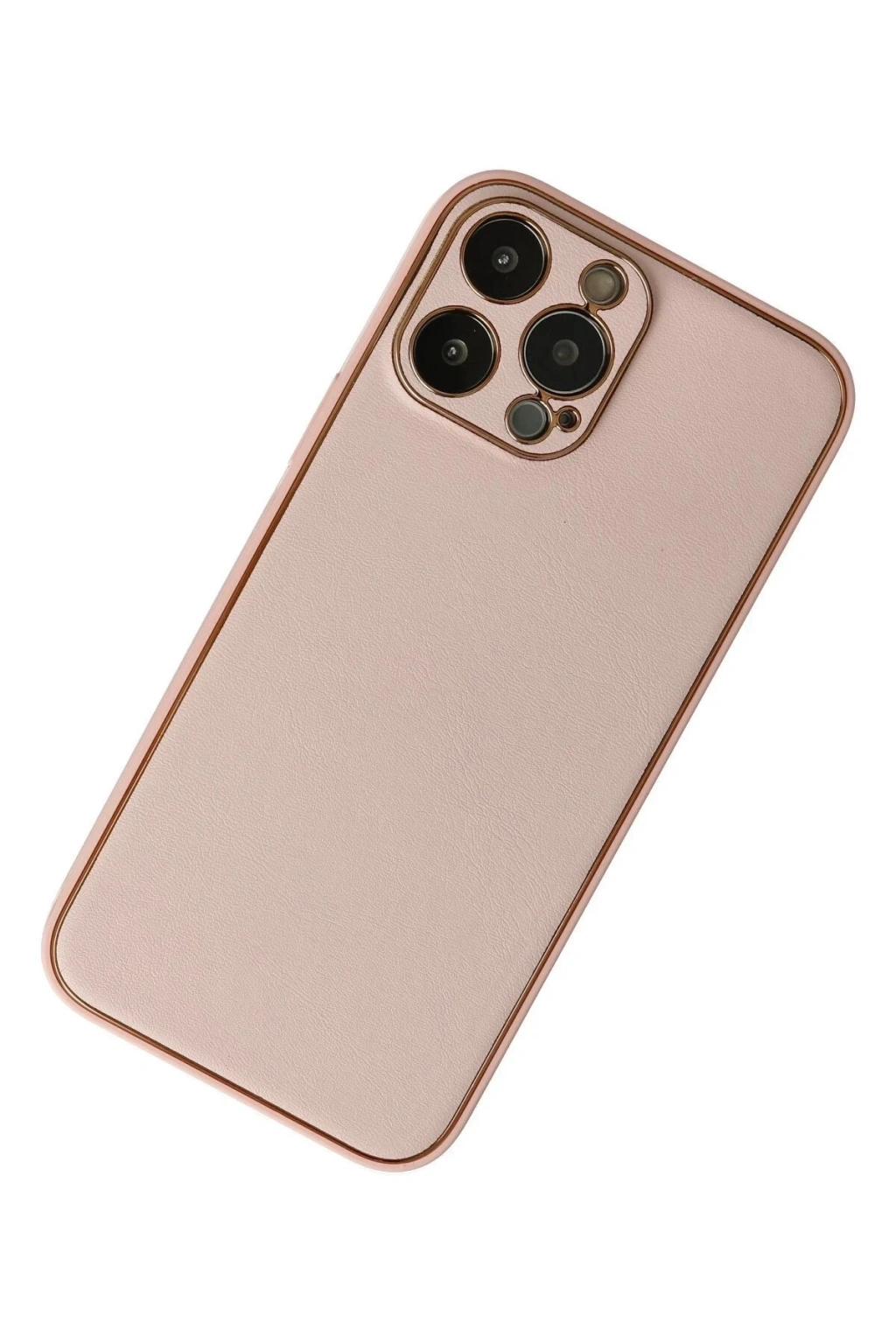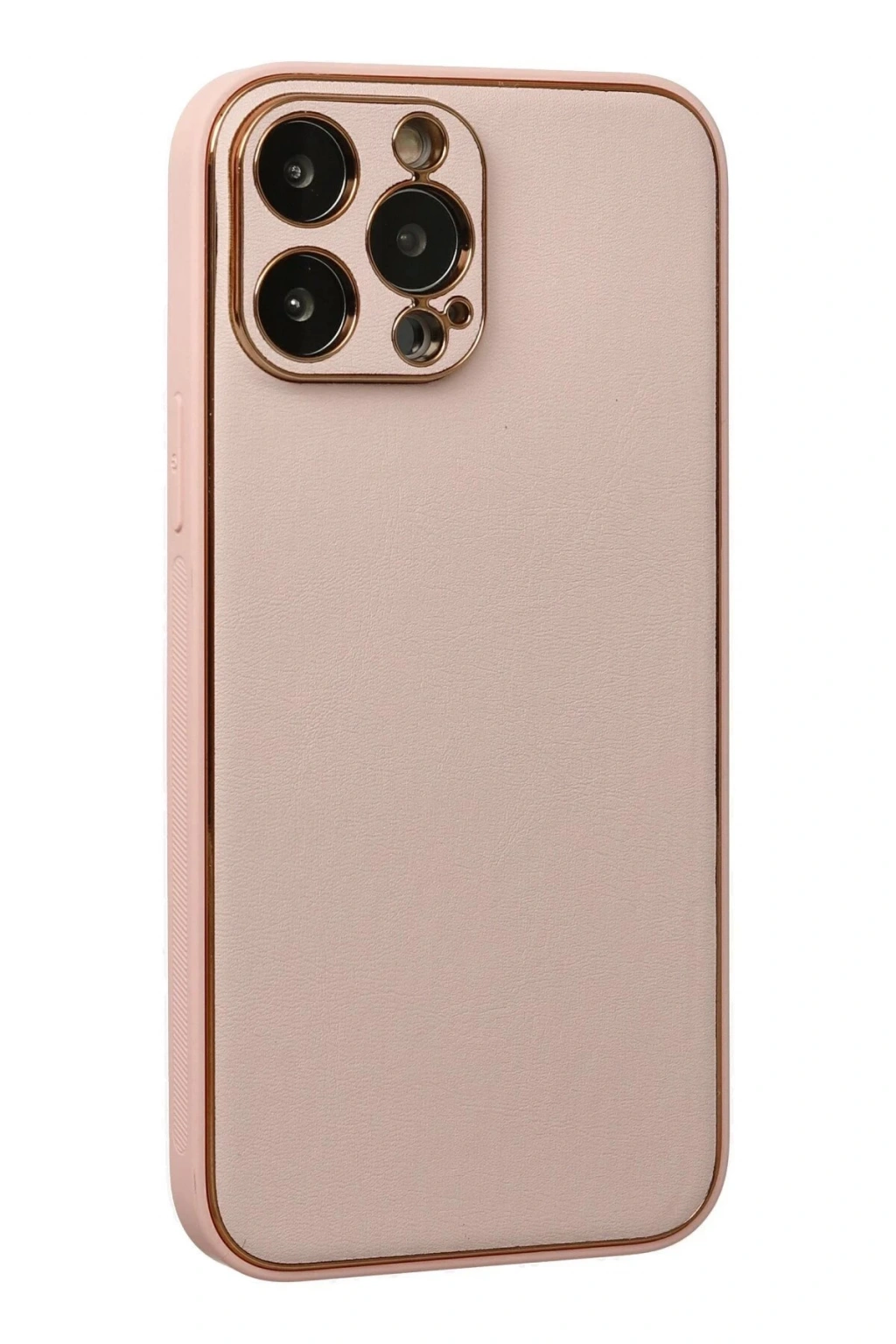Newface iPhone 13 Pro Max Kılıf Coco Deri Silikon Kapak - Pudra