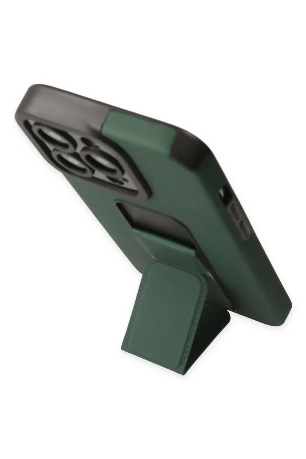 Newface iPhone 13 Pro Max Kılıf Mega Standlı Silikon - Yeşil
