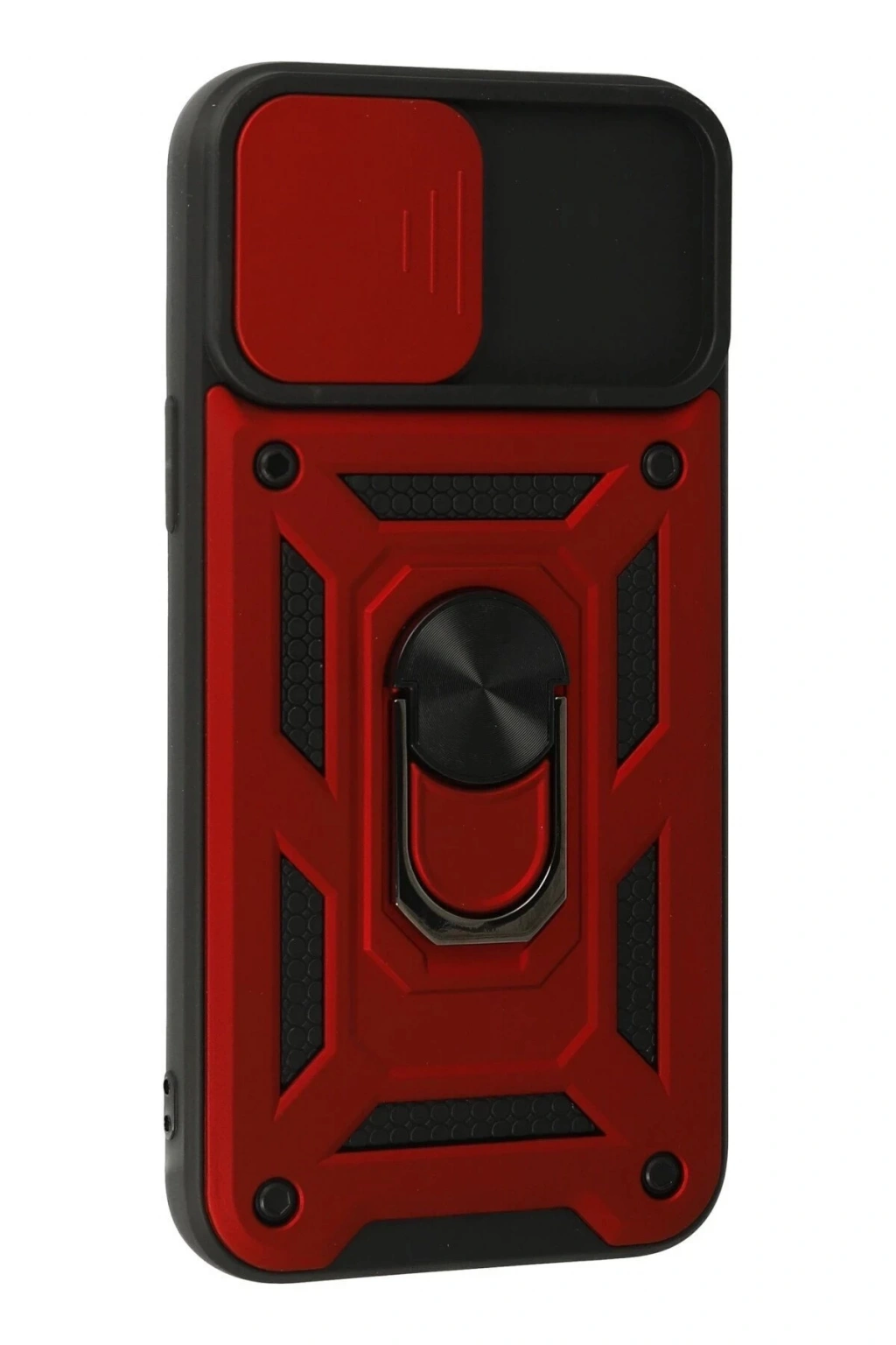 Newface iPhone 13 Pro Max Kılıf Pars Lens Yüzüklü Silikon - Kırmızı