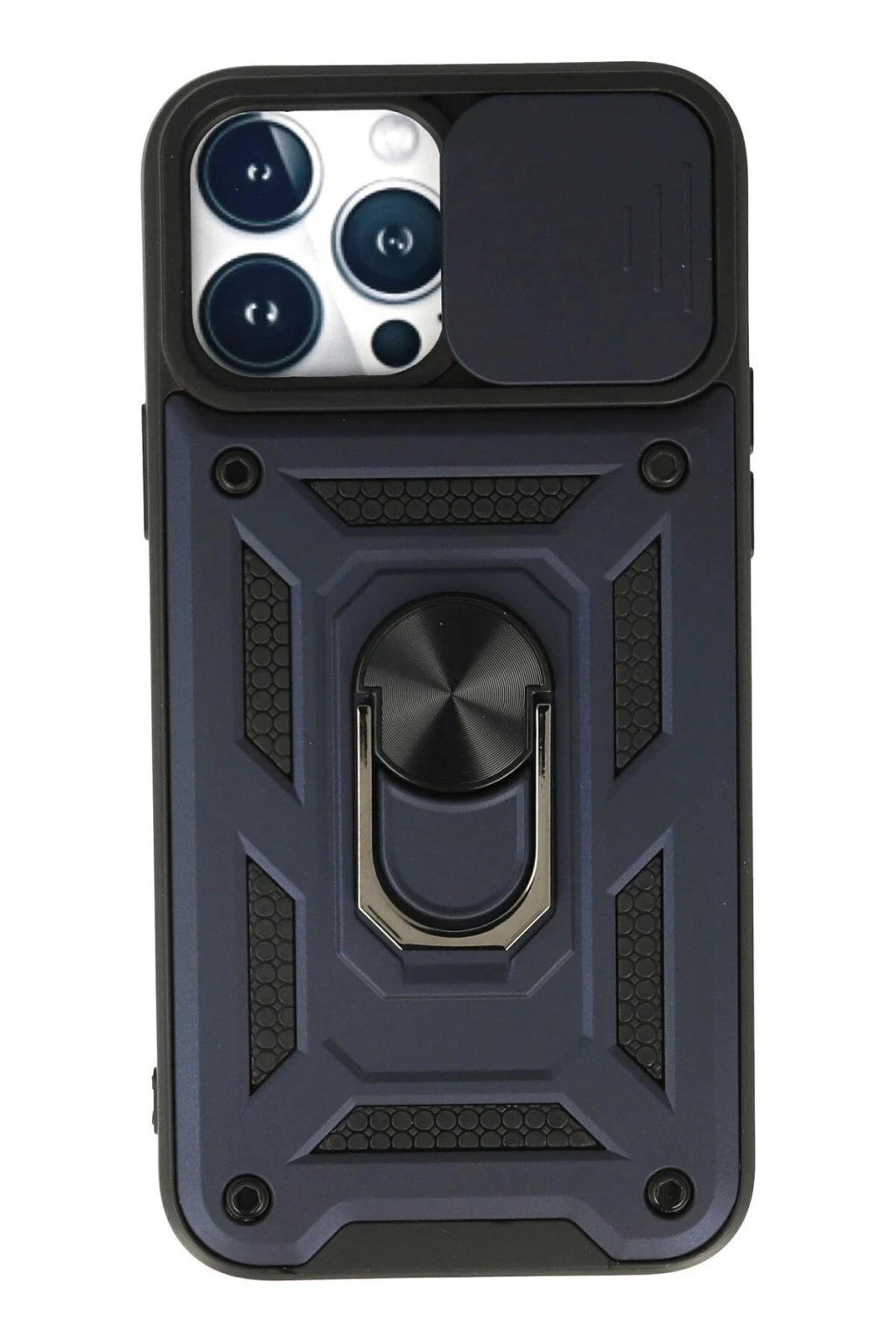 Newface iPhone 13 Pro Max Kılıf Pars Lens Yüzüklü Silikon - Lacivert