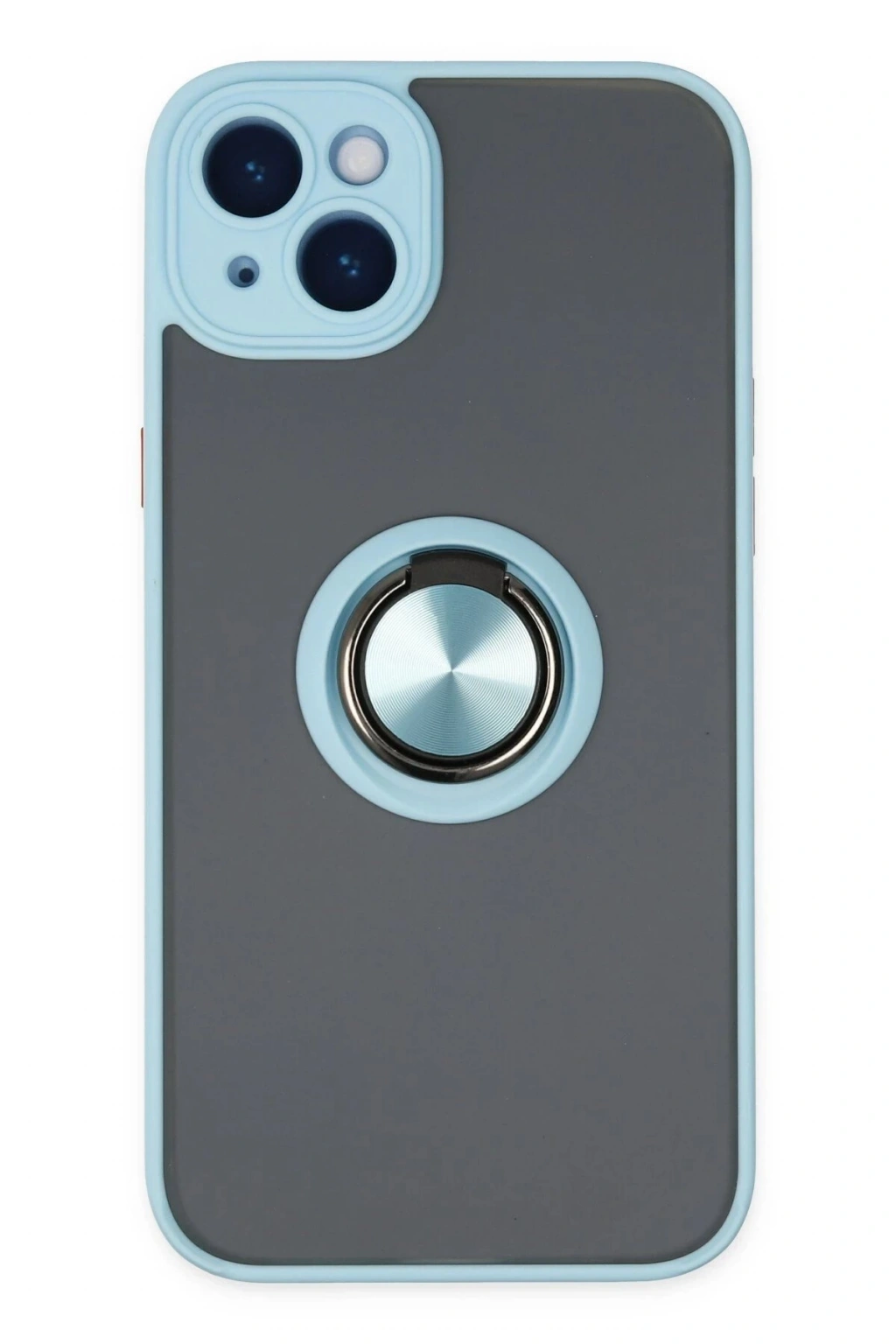 Newface iPhone 14 Kılıf Montreal Yüzüklü Silikon Kapak - Buz Mavi