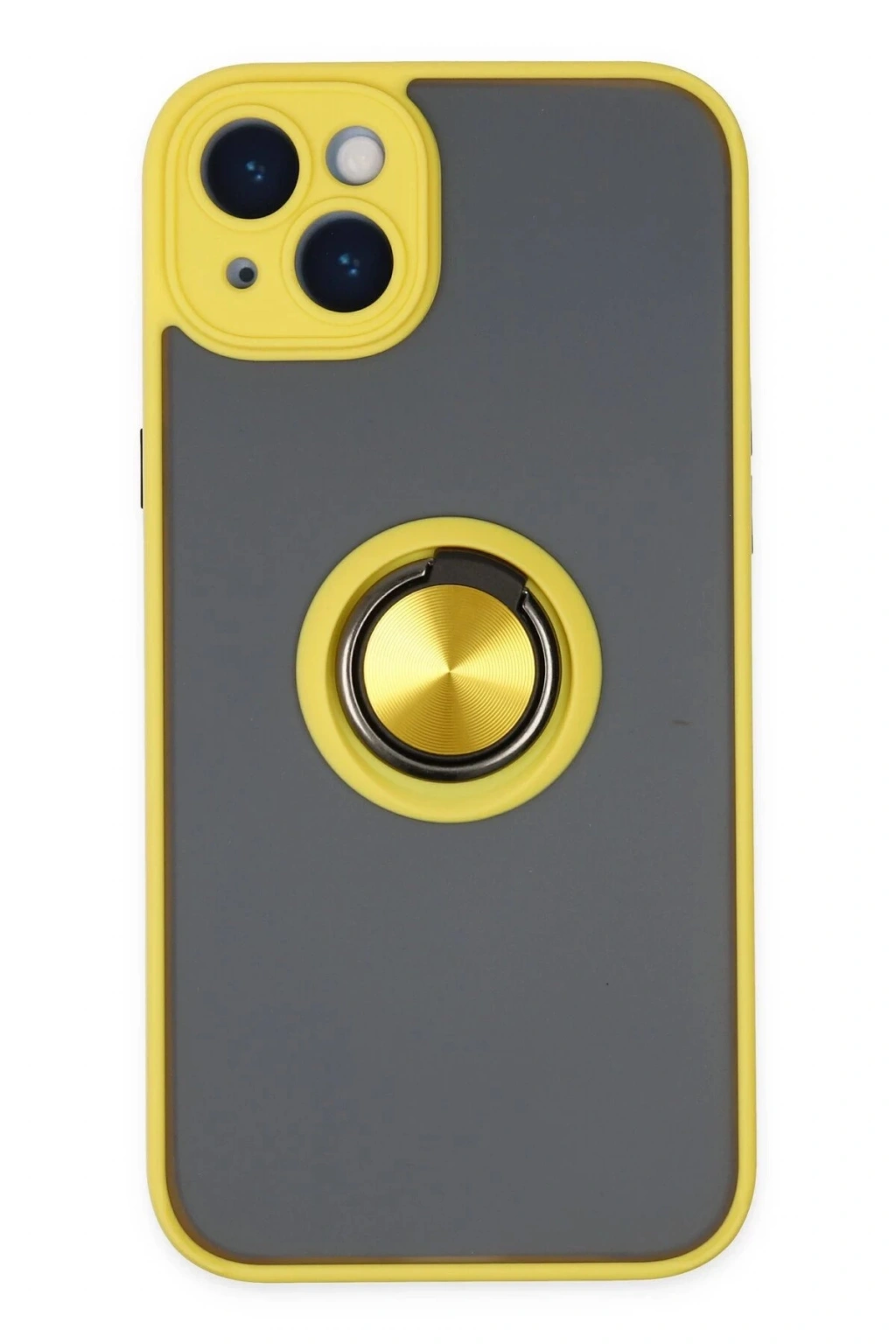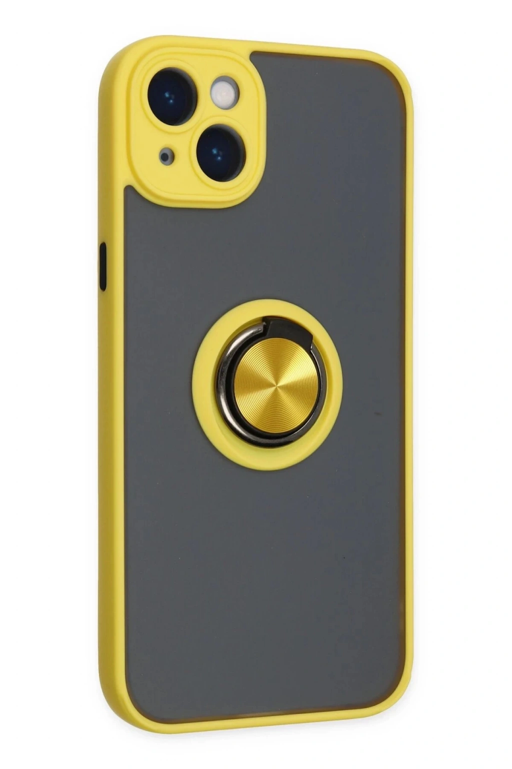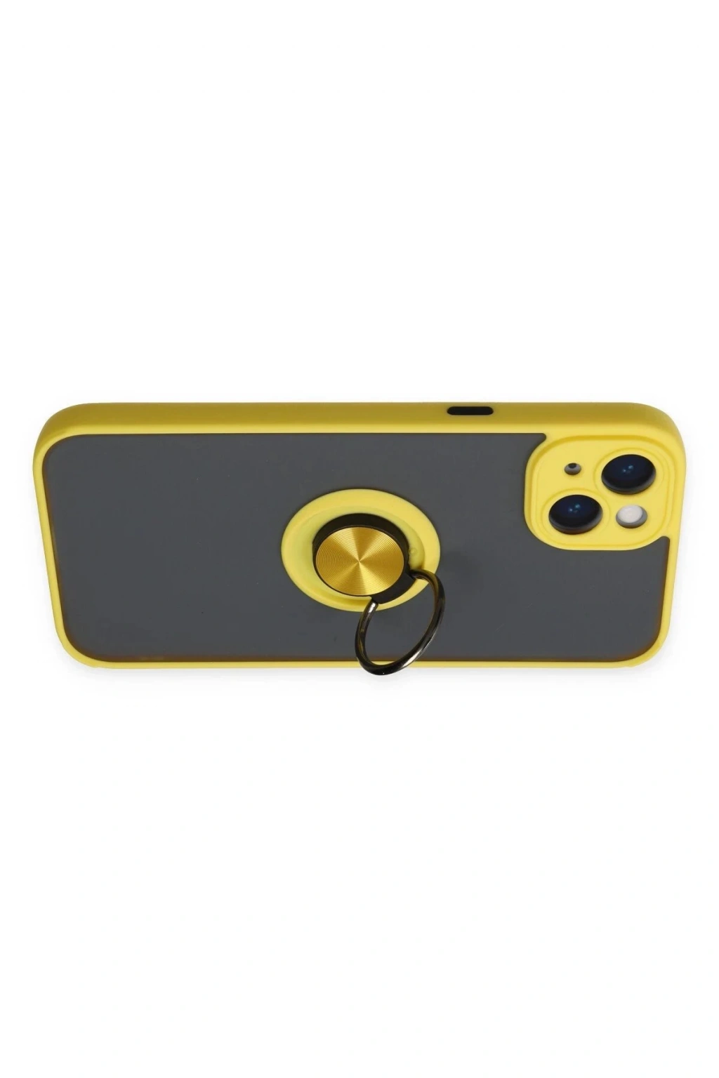 Newface iPhone 14 Kılıf Montreal Yüzüklü Silikon Kapak - Sarı