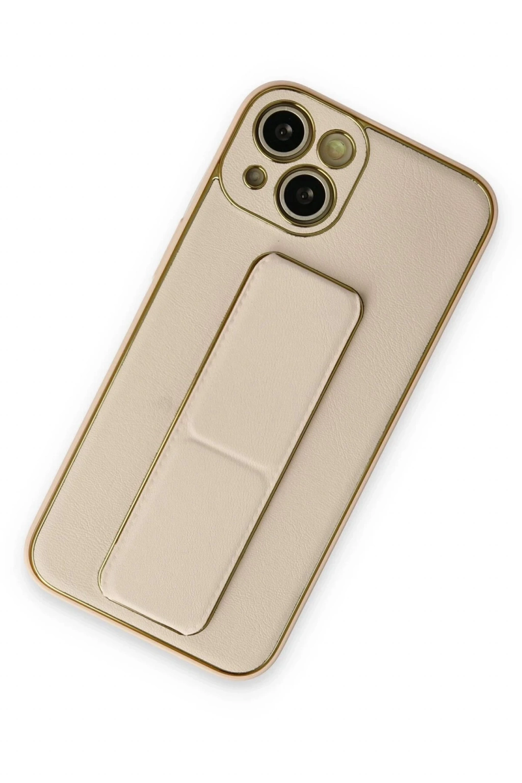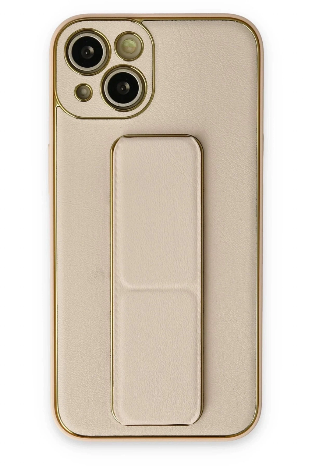 Newface iPhone 14 Plus Kılıf Coco Deri Standlı Kapak - Gold