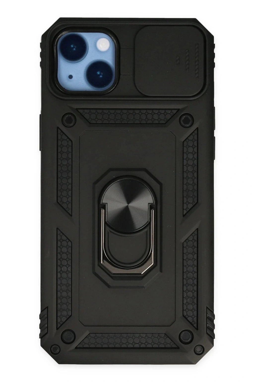 Newface iPhone 14 Plus Kılıf Pars Lens Yüzüklü Silikon - Siyah