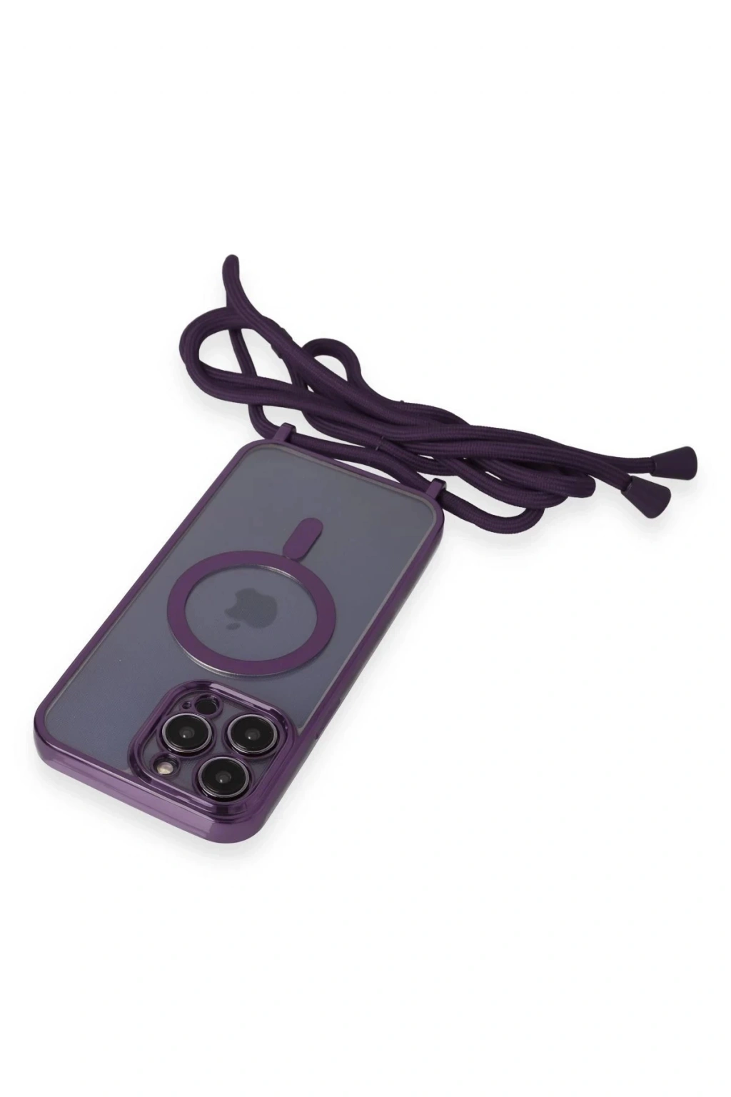 Newface iPhone 14 Pro Kılıf Divo Lazer Askılı Magsafe Kapak - Derin Mor