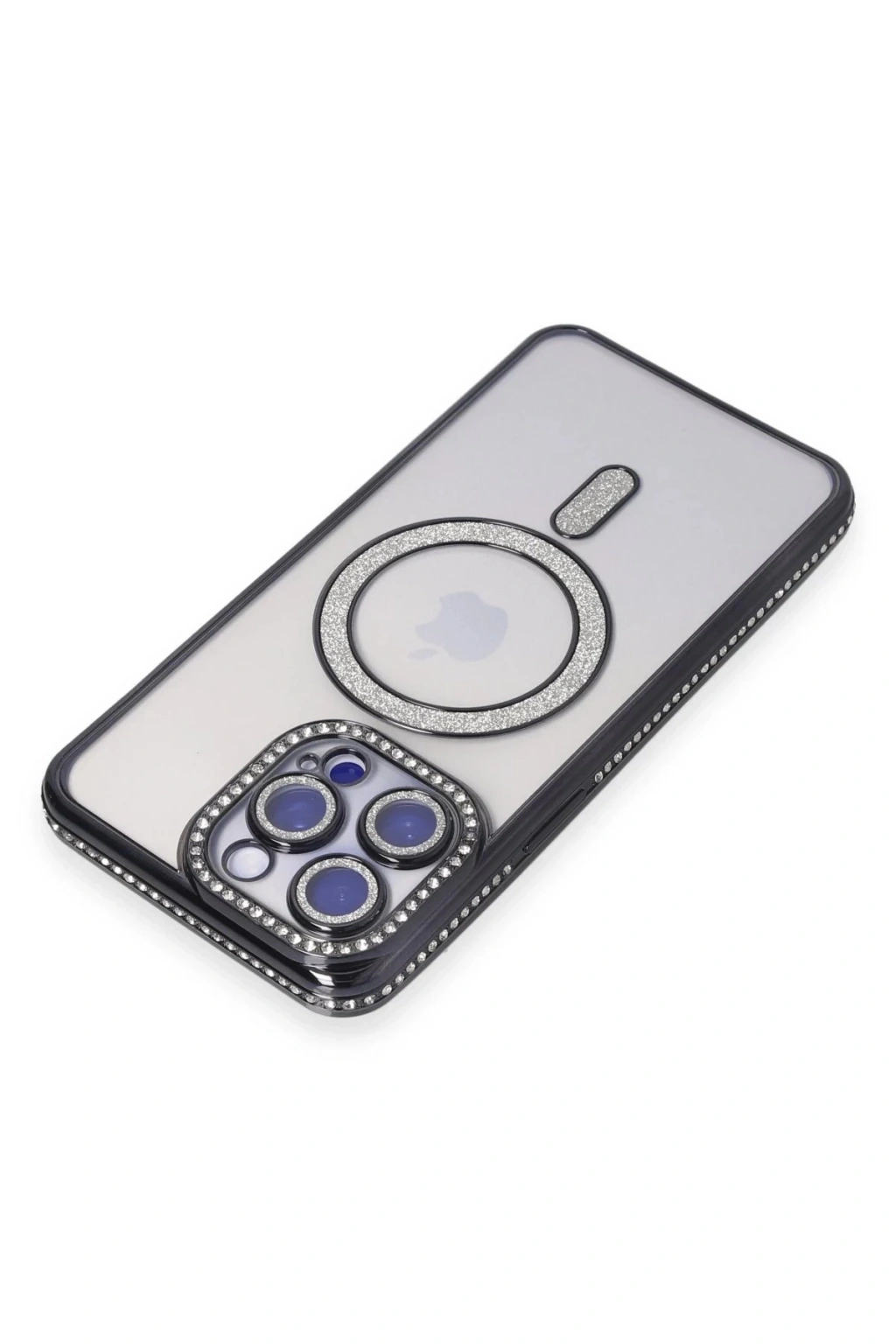 Newface iPhone 14 Pro Kılıf Joke Simli Magneticsafe Kılıf - Siyah