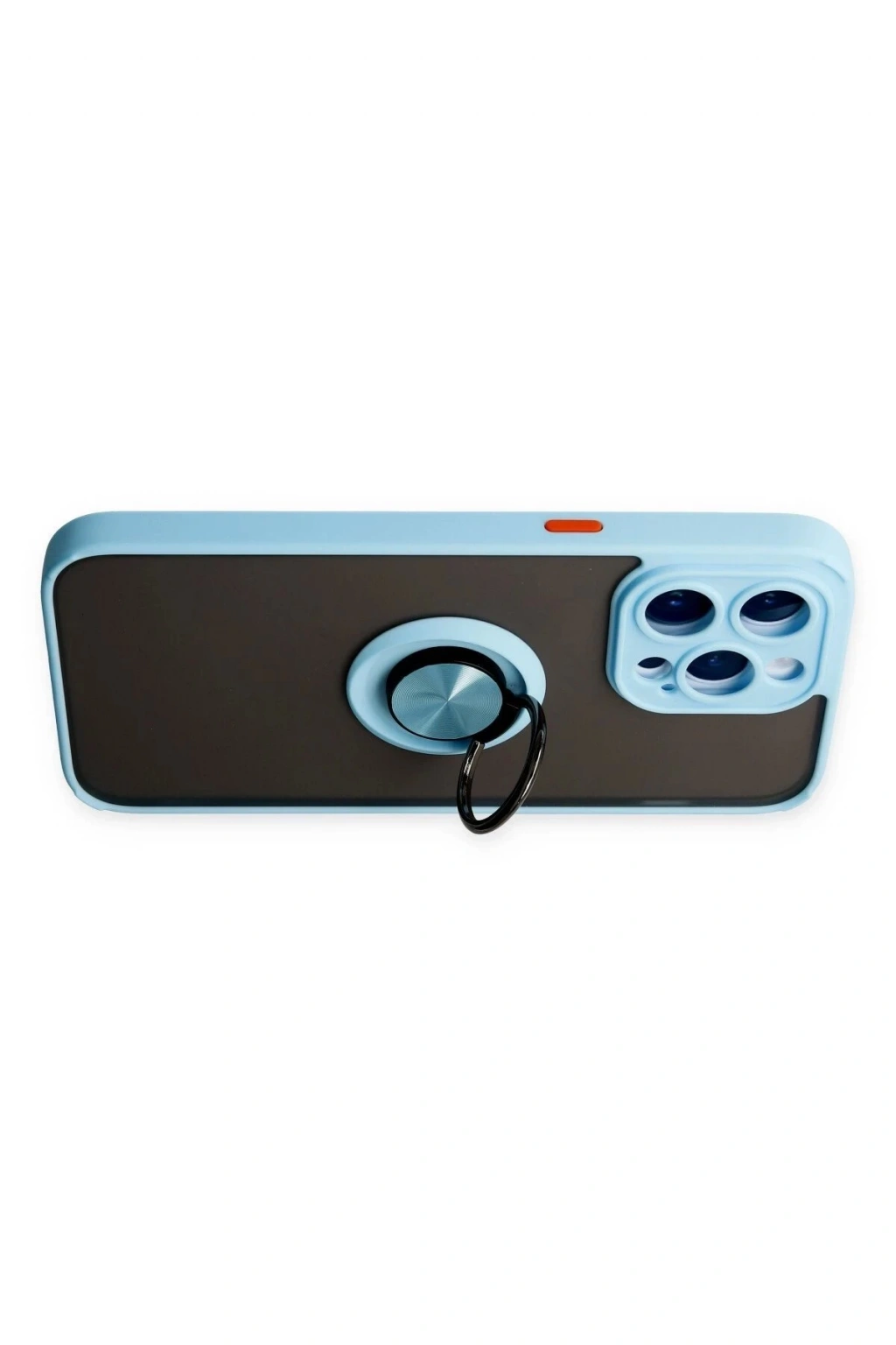 Newface iPhone 14 Pro Kılıf Montreal Yüzüklü Silikon Kapak - Buz Mavi