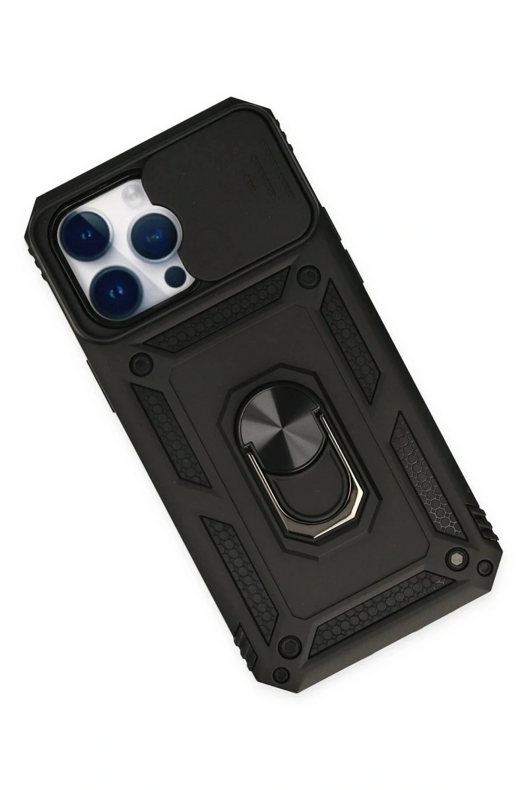 Newface iPhone 14 Pro Kılıf Pars Lens Yüzüklü Silikon - Siyah