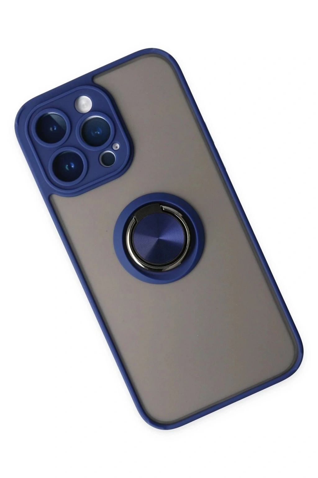 Newface iPhone 14 Pro Max Kılıf Montreal Yüzüklü Silikon Kapak - Lacivert