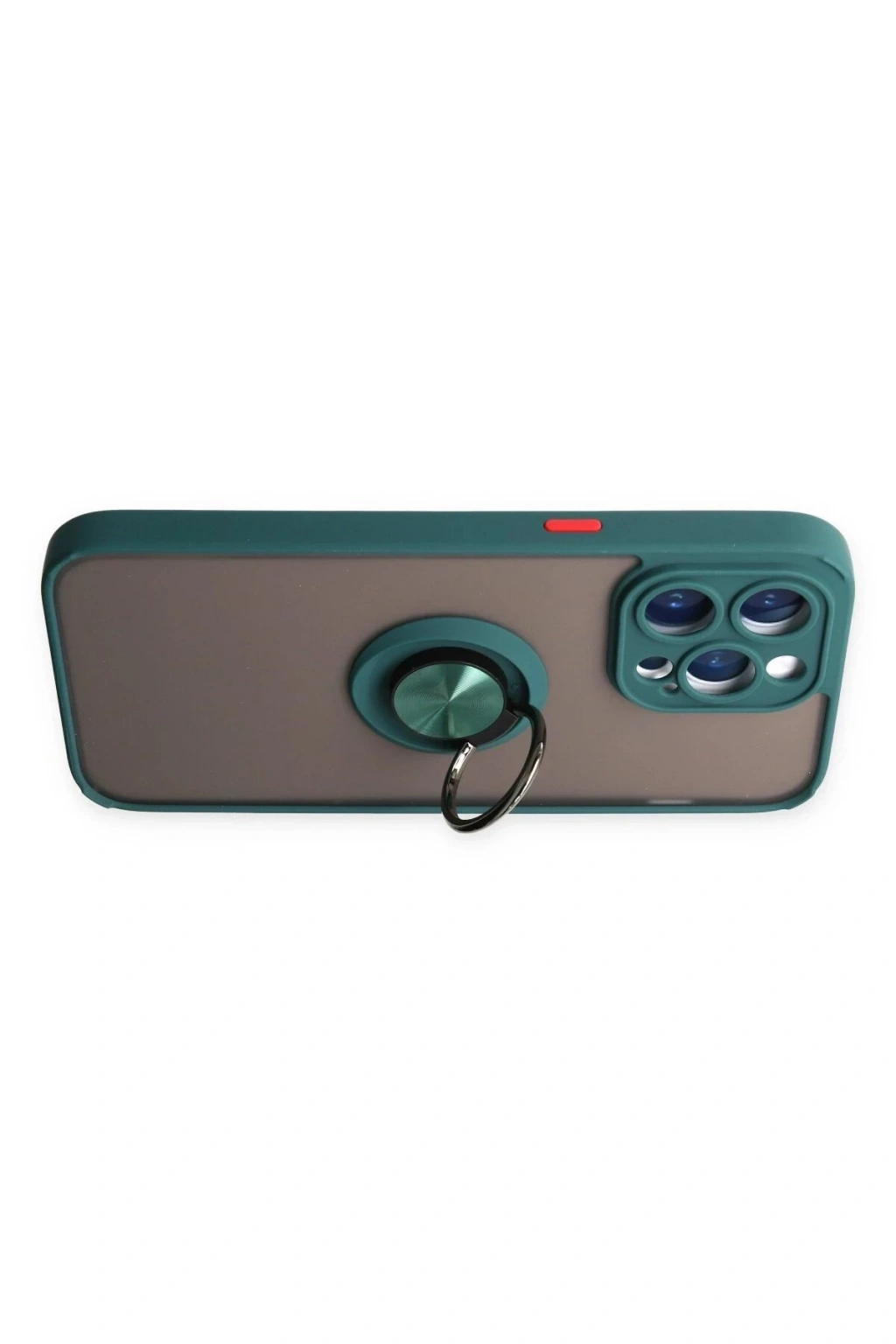 Newface iPhone 14 Pro Max Kılıf Montreal Yüzüklü Silikon Kapak - Yeşil