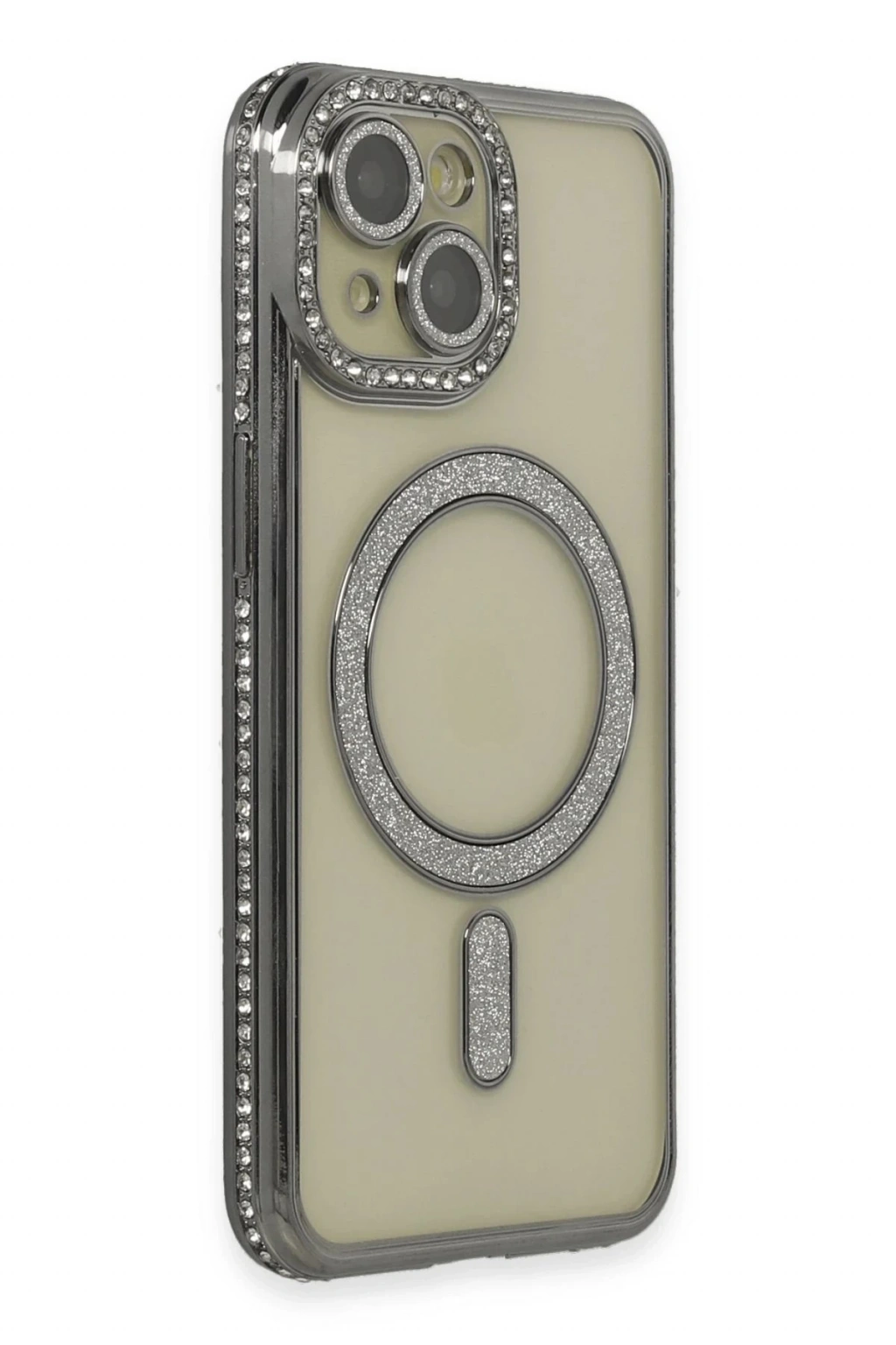 Newface iPhone 15 Kılıf Joke Simli Magneticsafe Kılıf - Gri