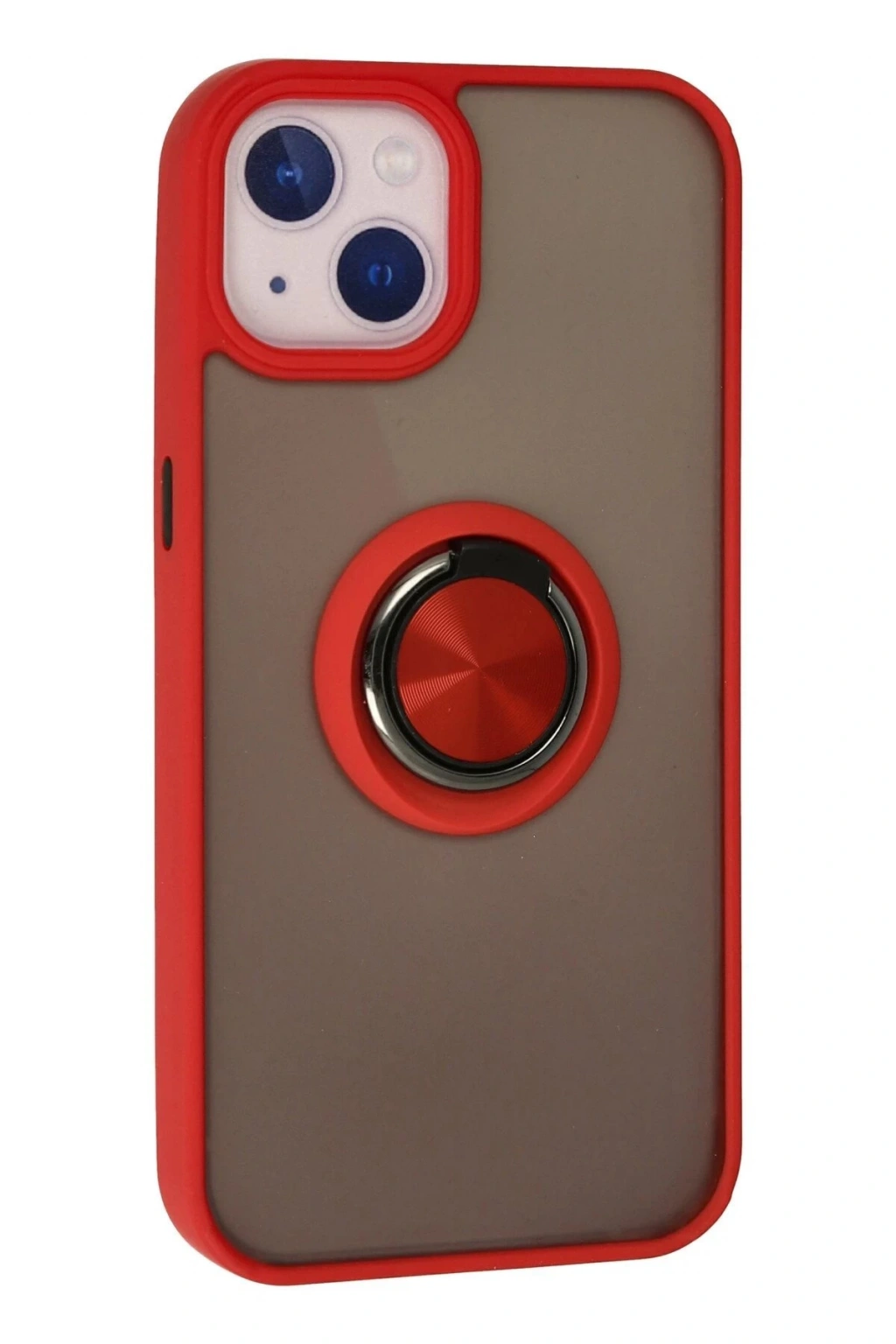 Newface iPhone 15 Kılıf Montreal Yüzüklü Silikon Kapak - Kırmızı