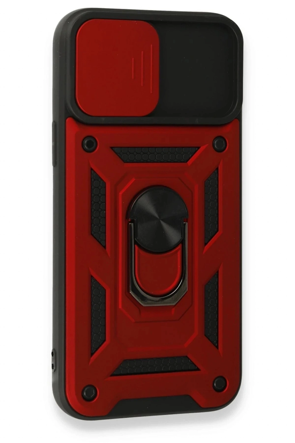 Newface iPhone 15 Pro Max Kılıf Pars Lens Yüzüklü Silikon - Kırmızı