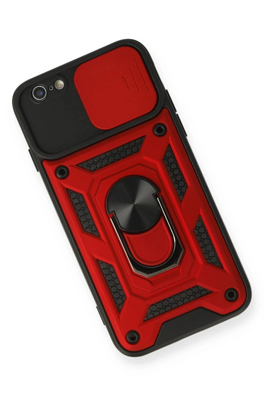 Newface iPhone 6 Kılıf Pars Lens Yüzüklü Silikon - Kırmızı