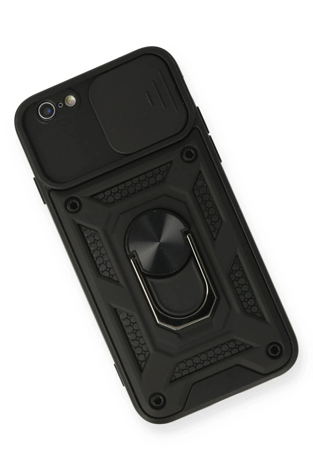 Newface iPhone 6 Kılıf Pars Lens Yüzüklü Silikon - Siyah