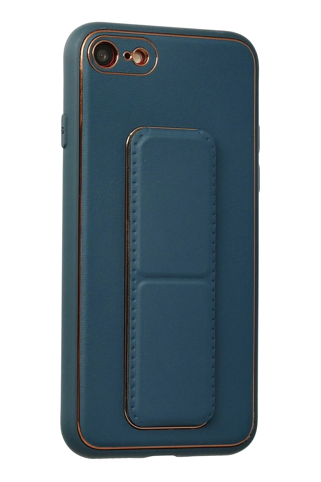 Newface iPhone 7 Kılıf Coco Deri Standlı Kapak - Mavi