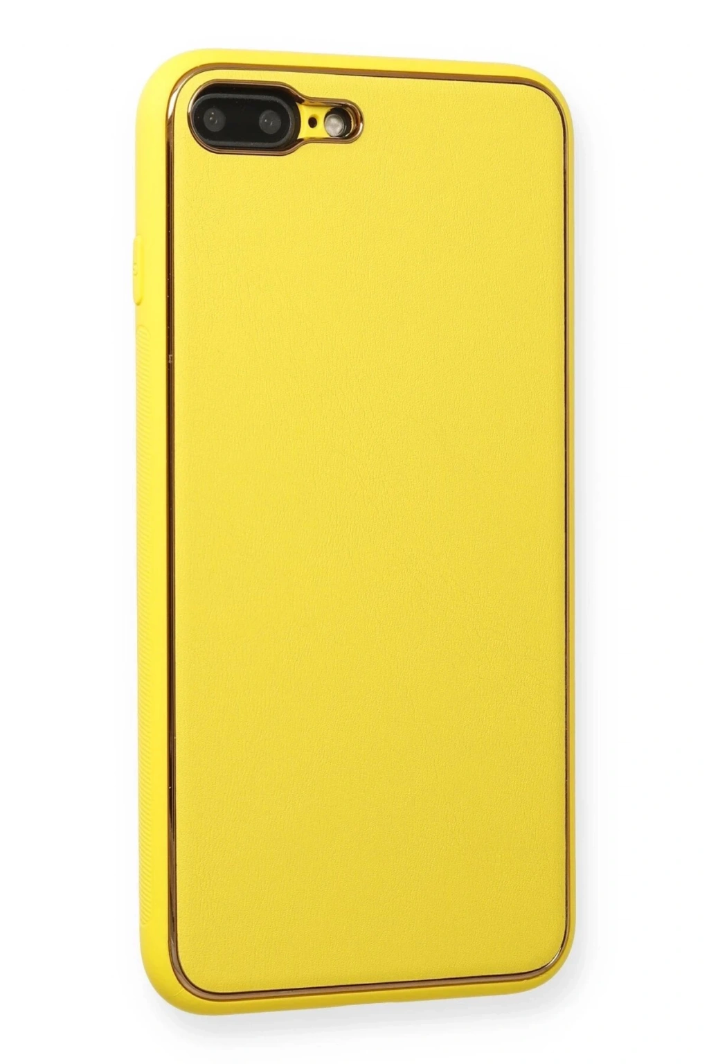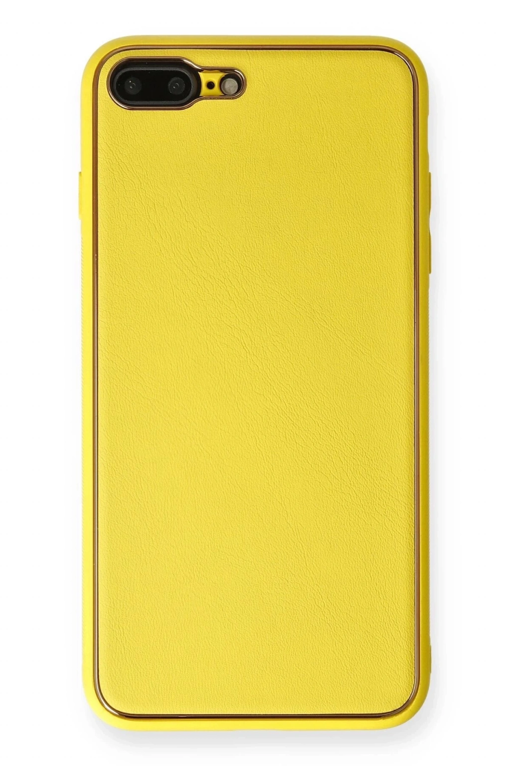 Newface iPhone 7 Plus Kılıf Coco Deri Silikon Kapak - Sarı