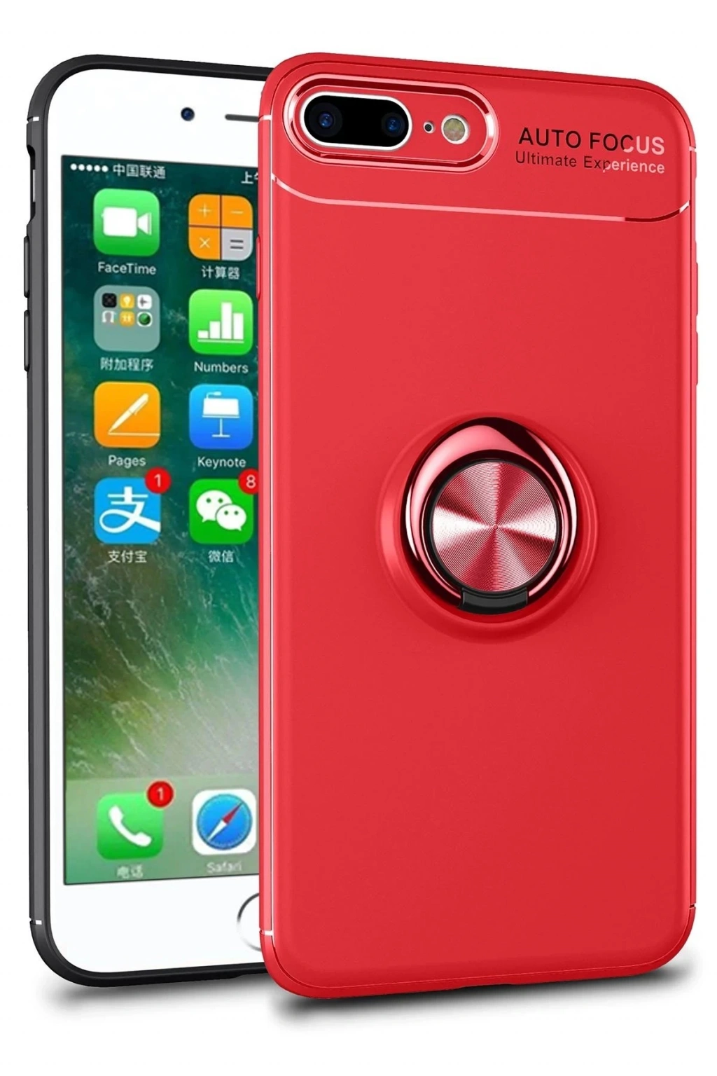 Newface iPhone 7 Plus Kılıf Range Yüzüklü Silikon - Kırmızı