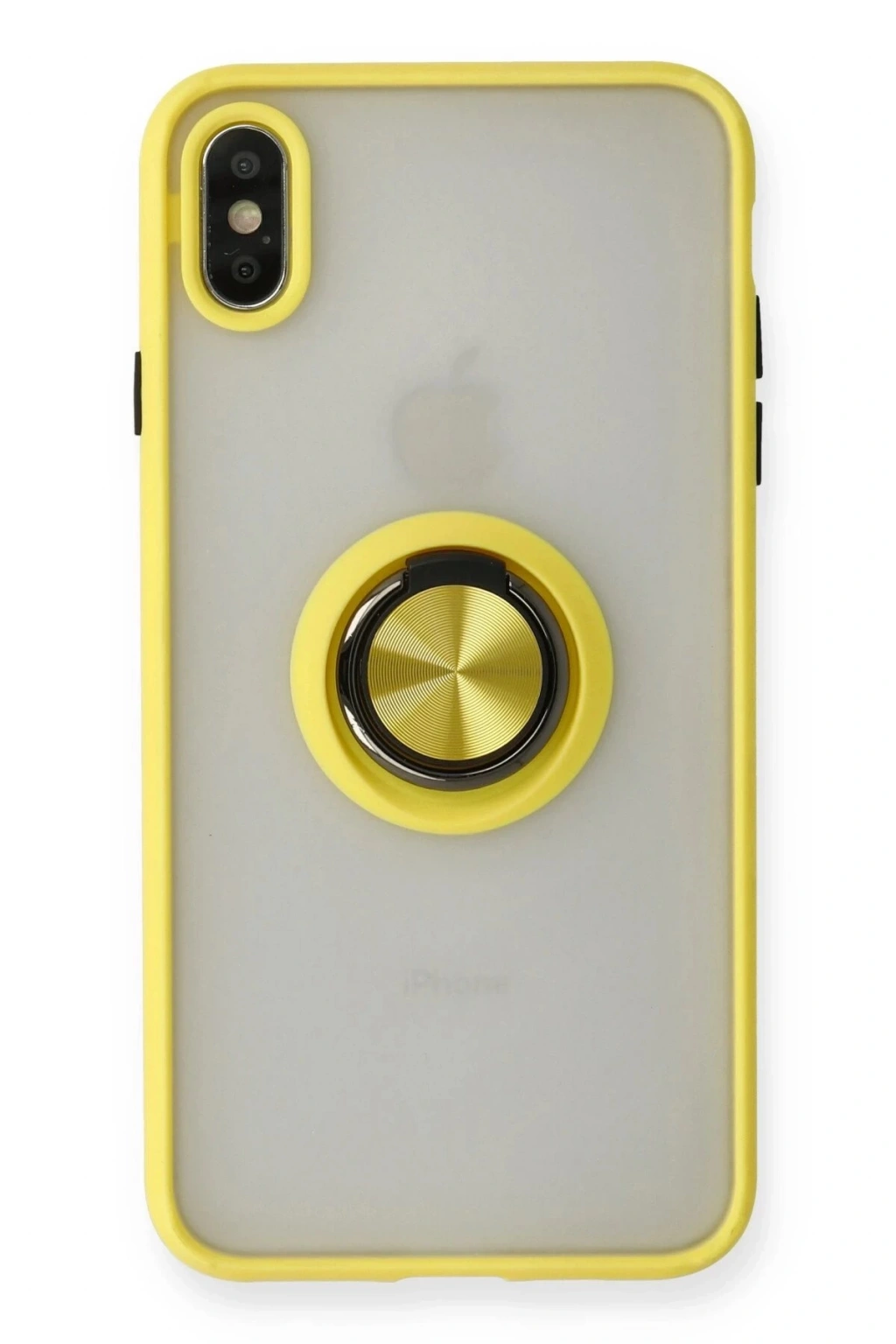 Newface iPhone X Kılıf Montreal Yüzüklü Silikon Kapak - Sarı