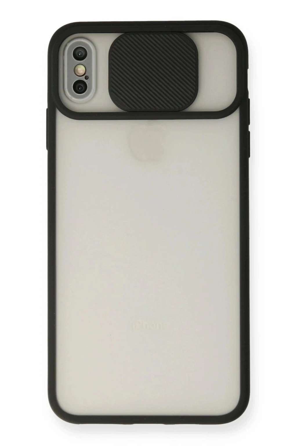 Newface iPhone X Kılıf Palm Buzlu Kamera Sürgülü Silikon - Siyah