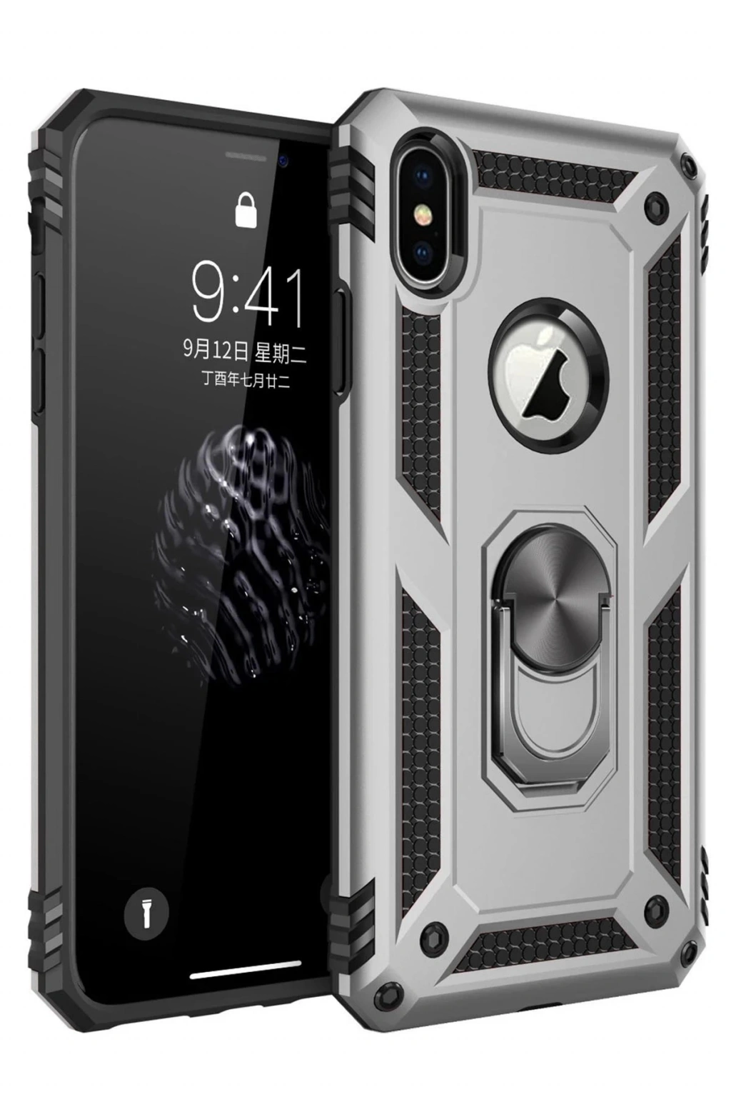 Newface iPhone X Kılıf Sofya Yüzüklü Silikon Kapak - Gümüş