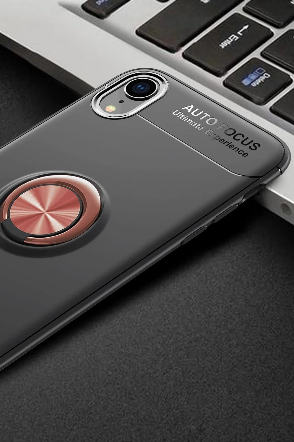 Newface iPhone XR Kılıf Range Yüzüklü Silikon - Siyah-Gold