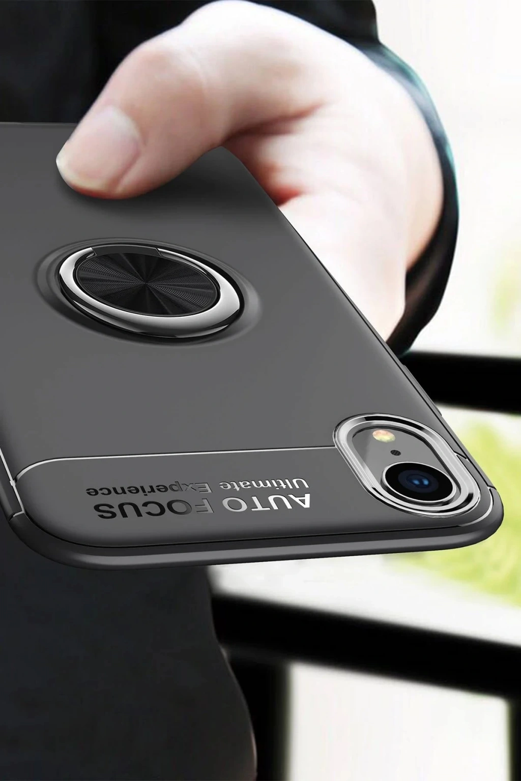 Newface iPhone XR Kılıf Range Yüzüklü Silikon - Siyah-Kırmızı