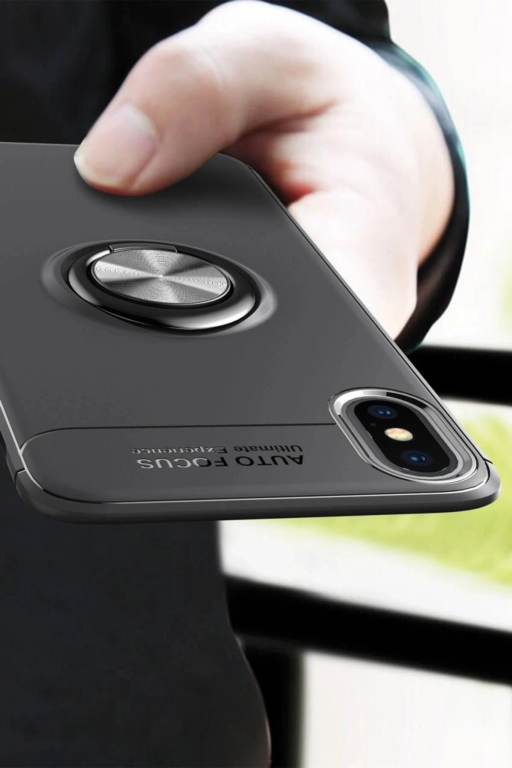 Newface iPhone XS Kılıf Range Yüzüklü Silikon - Siyah
