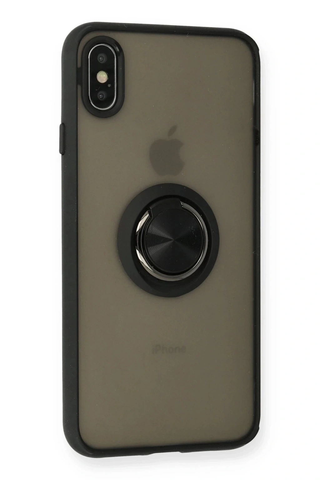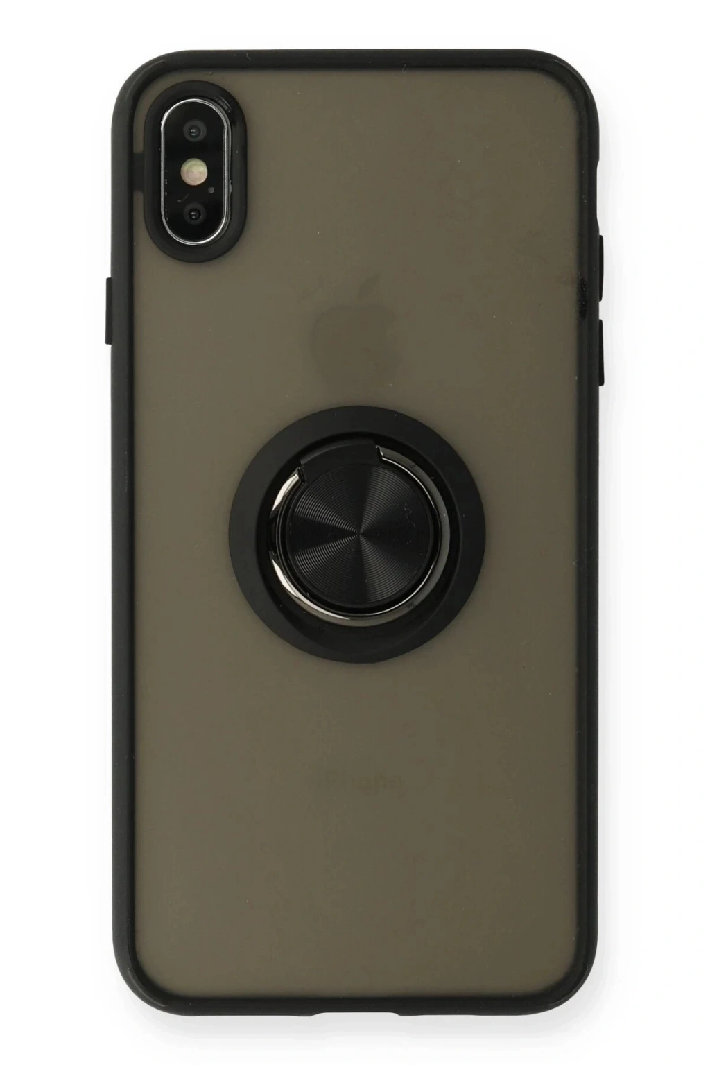 Newface iPhone XS Max Kılıf Montreal Yüzüklü Silikon Kapak - Siyah