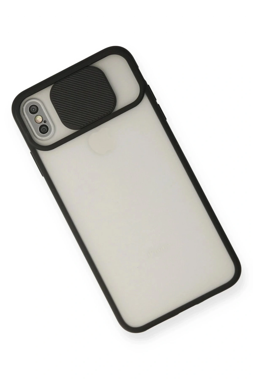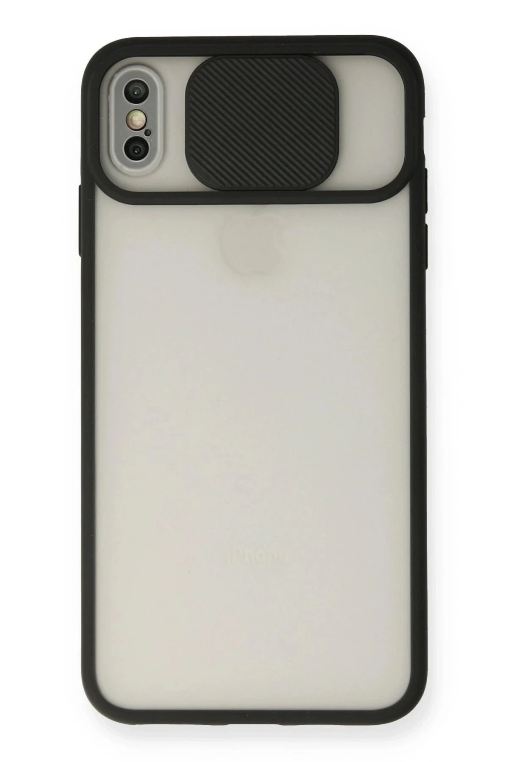 Newface iPhone XS Max Kılıf Palm Buzlu Kamera Sürgülü Silikon - Siyah
