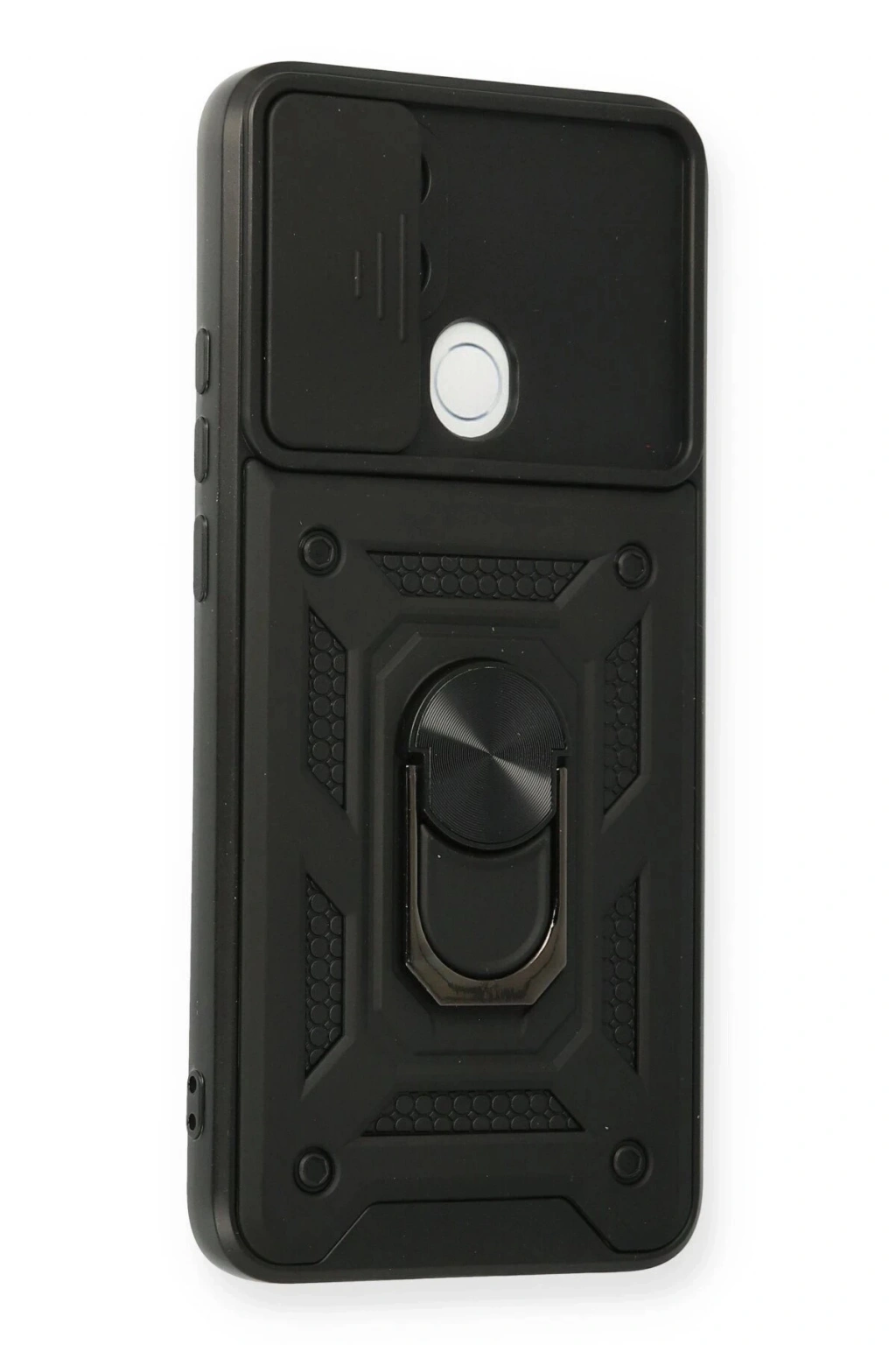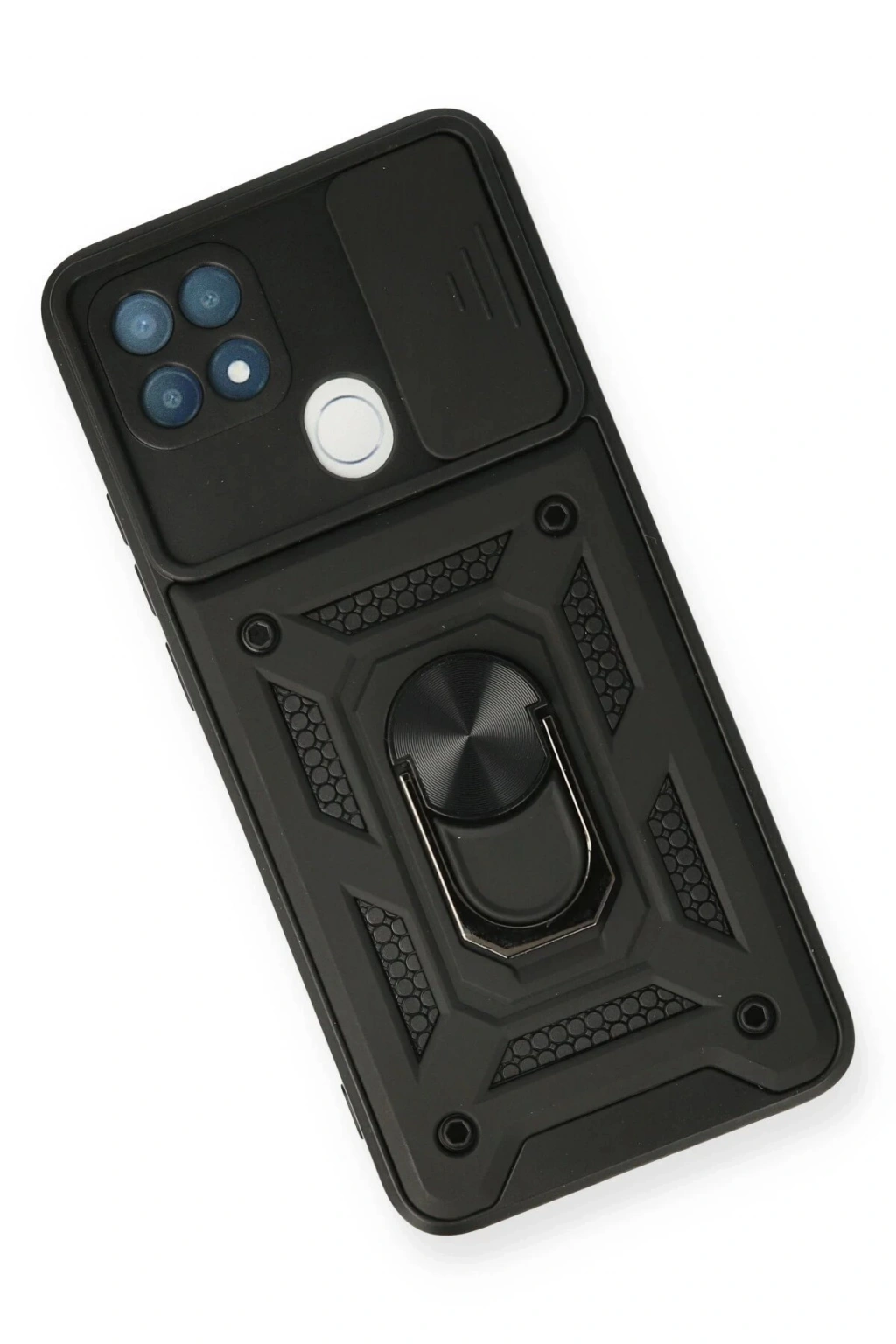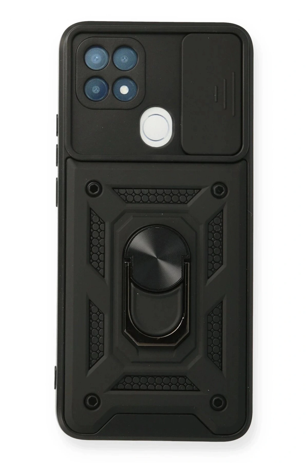 Newface Oppo A15 Kılıf Pars Lens Yüzüklü Silikon - Siyah