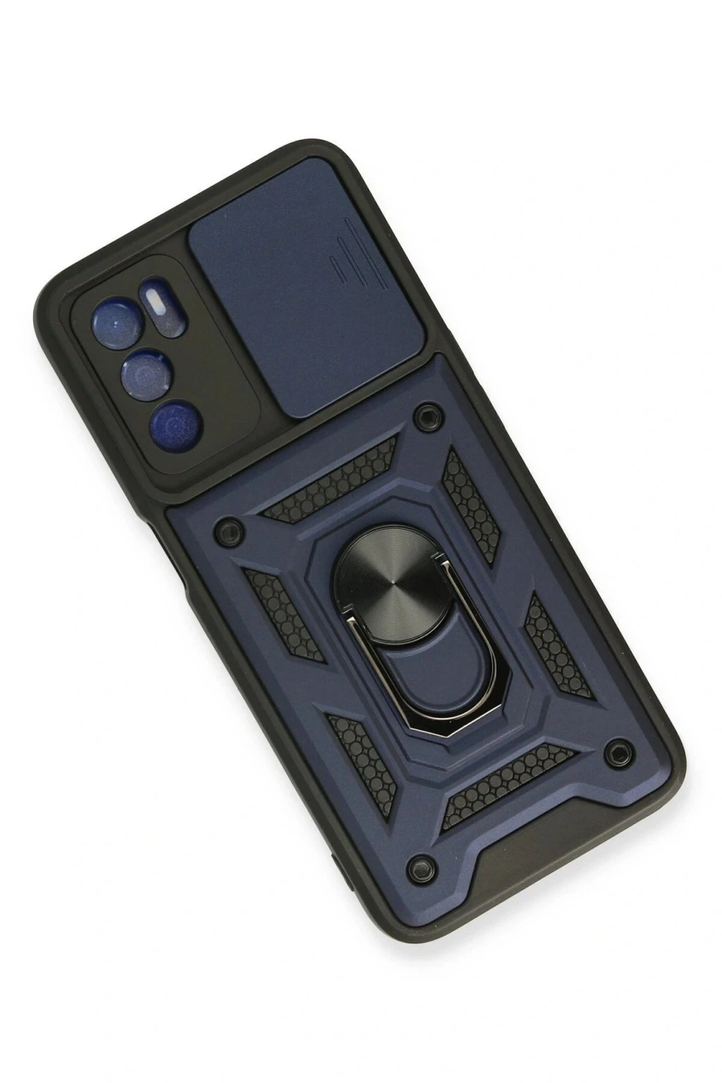 Newface Oppo A16 Kılıf Pars Lens Yüzüklü Silikon - Lacivert