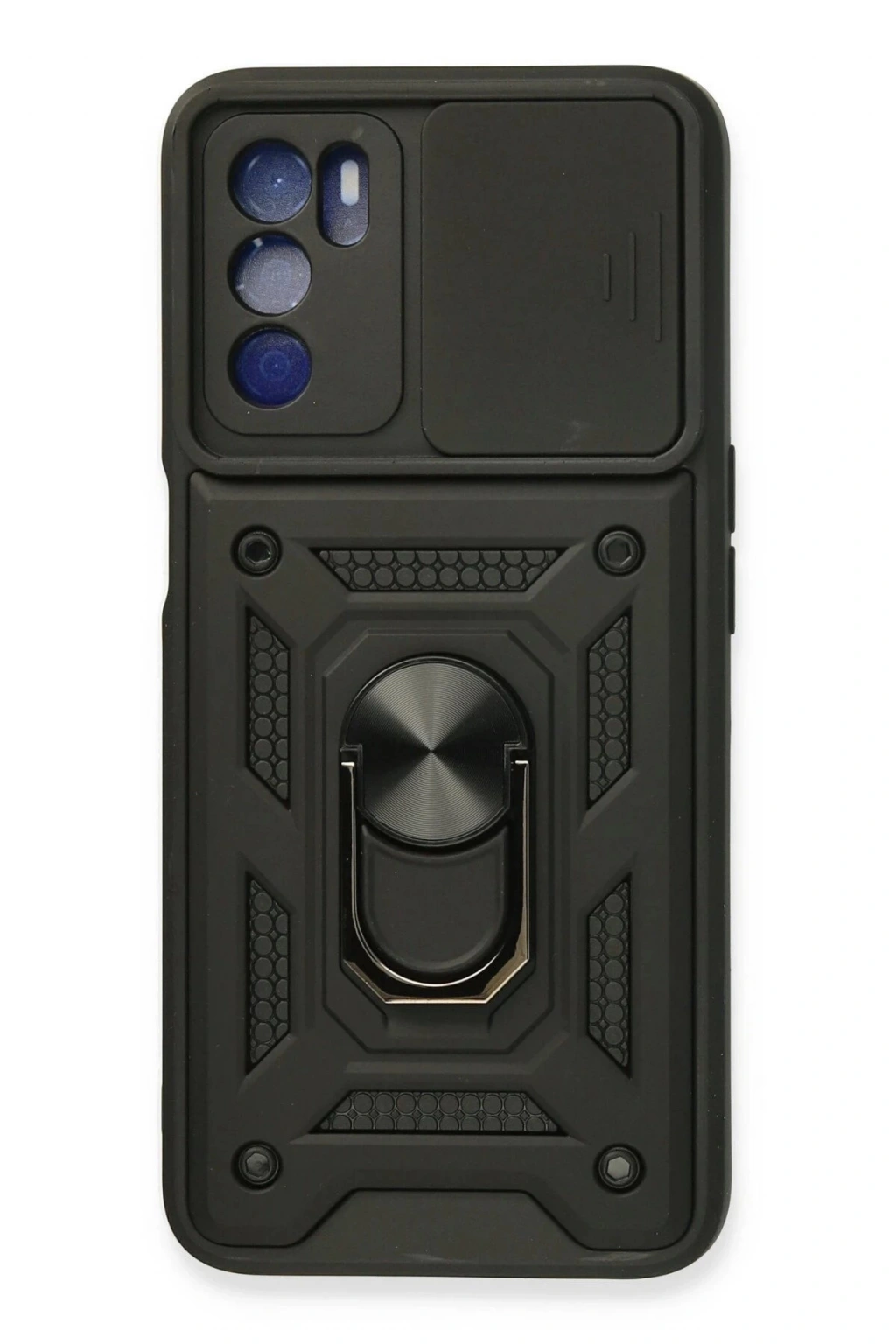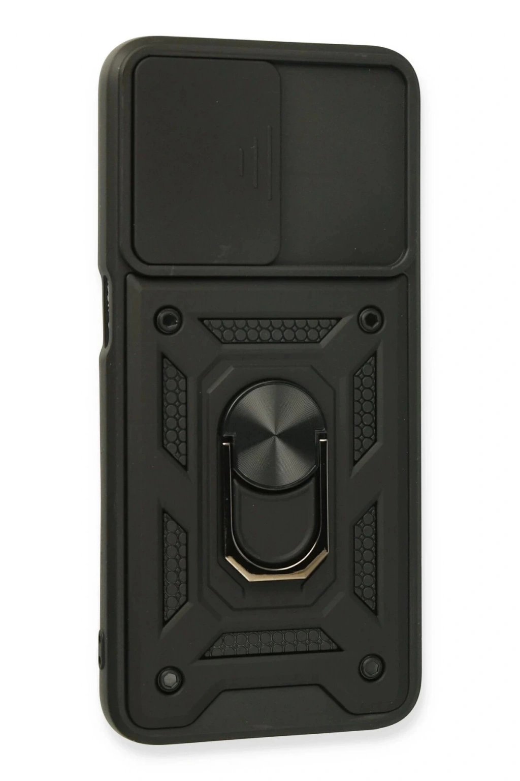 Newface Oppo A16 Kılıf Pars Lens Yüzüklü Silikon - Siyah