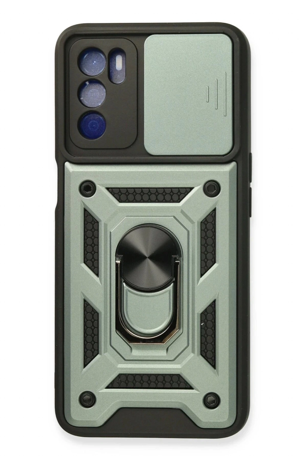 Newface Oppo A16 Kılıf Pars Lens Yüzüklü Silikon - Yeşil