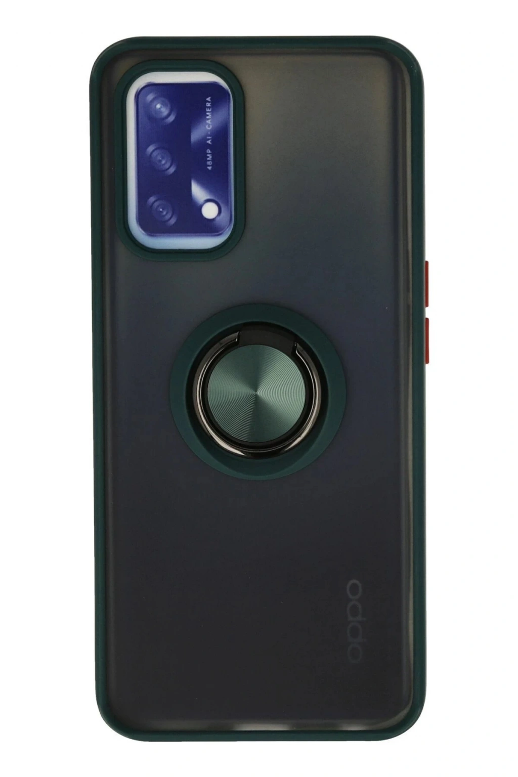 Newface Oppo A74 4G Kılıf Montreal Yüzüklü Silikon Kapak - Yeşil