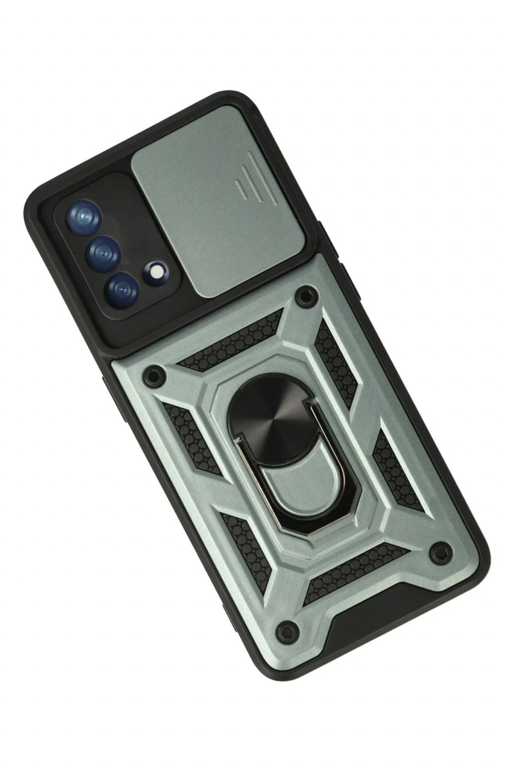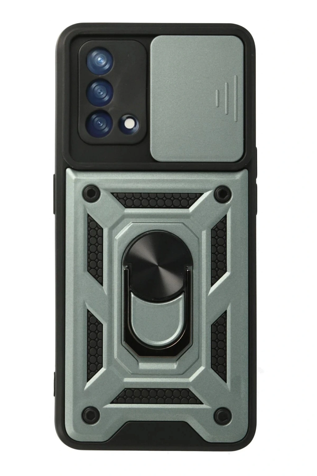 Newface Oppo A74 4G Kılıf Pars Lens Yüzüklü Silikon - Yeşil