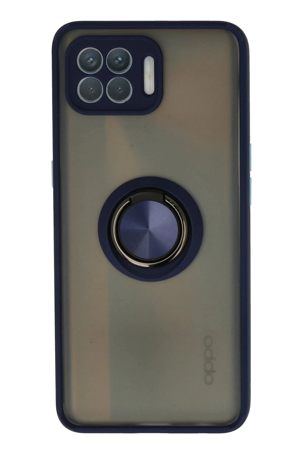 Newface Oppo Reno 4 Lite Kılıf Montreal Yüzüklü Silikon Kapak - Lacivert